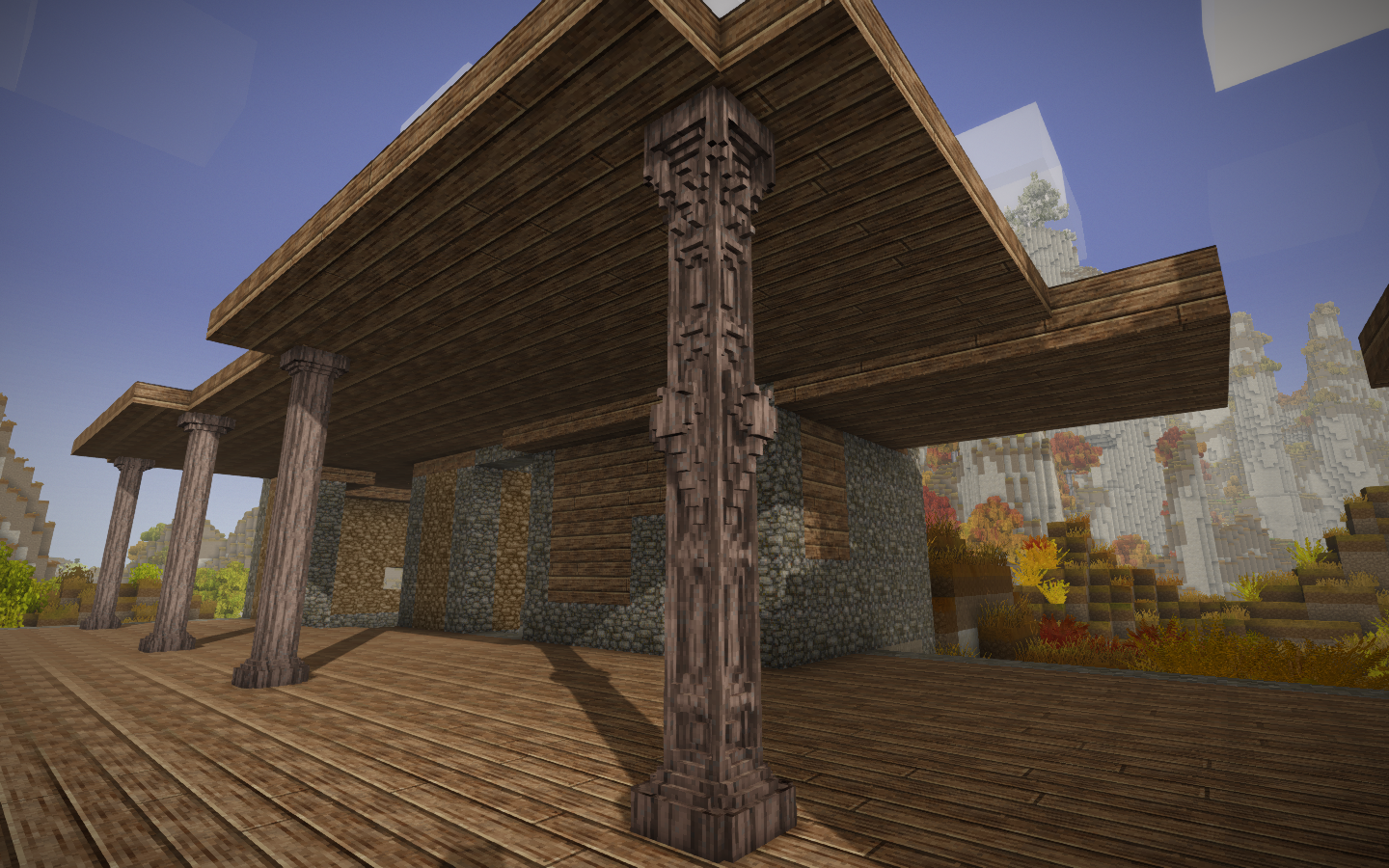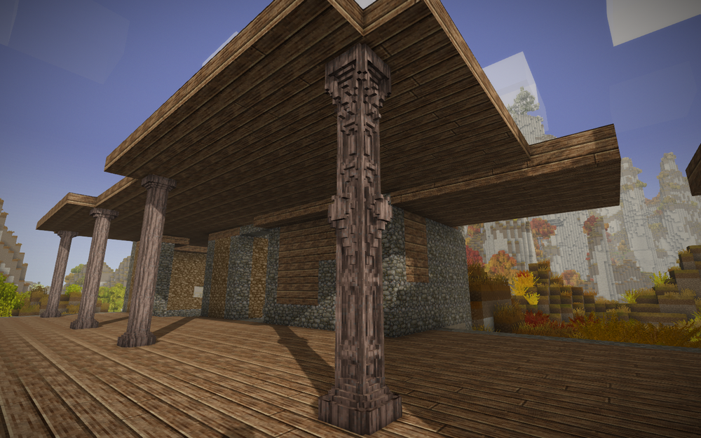 I just wanted to show off a lil on a bit of work that i am really proud of in my server. I made a full pillar from chiseling with functional lantern points and lil dragons helping hold up the upper floor! I plan on making the other three pillars just like this! And i'll probably end up showing more progress reports as i make more of the tavern!