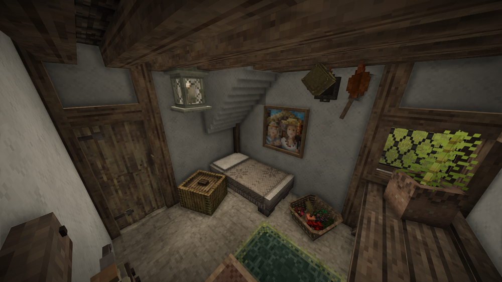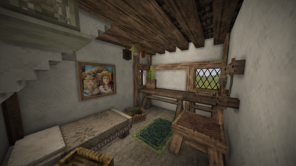 I saw this picture on pinterest of a nice little blacksmith, and that is where i got my inspiration from. I also made a little attic for the said blacksmith to sleep and cook a meal for him/her self. If anyone has any suggestions of what you want me to build, let me know! I am fairly new to this game, but i really enjoy the building of it!