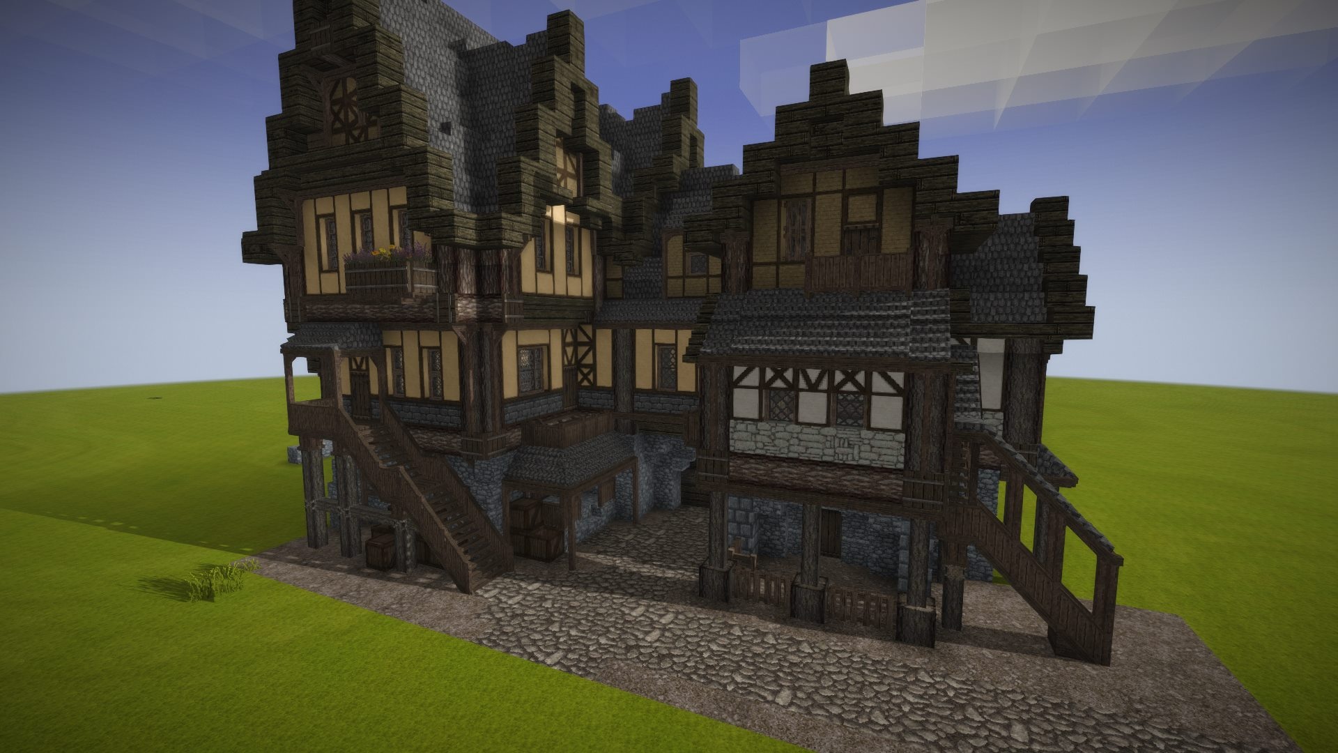 Because you''ll never have enough blocks to build with. Stuff added by this mod: Additional cobblestone recipes, with higher output. [1] Two new road blocks - gravel and paved one, including slab, full cube and path versions [2] Five framed block kinds, including changing the original tudors. There also the aged versions of framed blocks, could be crafted using aged planks. Seven new doors and five trapdoors, the latter include two cupboard doors. Cupboards. (Basically shelf with wooden walls, because why not) Windows. A lot of. Individual, tall, even tops for wide gothic windows. [3] And modular windows! Greenhouses made of them looks good, I guess. (And they even work) [4] Since version 1.1.0: New instrument for cycling through block versions: Masonry compasses. [5] Wooden supports, rough and debarked. Balcony wooden platforms. Balcony wooden stairs. Two balcony fence blocks - I-way and L-way. Sideless roof block version for copper, slate and clay. DELETED: Alternate textures for aged tudors. Why? Because it's the heaviest (in relation to texture atlass) and least usefull part of mod. Let me explain: Since version 1.1.1: New instrument for block shape update: Masonry mallet. Russian translation added by ZigThe Hedge. Oh, it;s time for a magic trick: R ---------> Я New submod: Buildingplus: Multiroof submod. It includes: [6] ------------------ New shingle blocks: main multiroof block, roof ridge block, three roof eaves blocks and two roof rakes blocks. ------------------ For submod to work the Buildingplus 1.1.1+ is required. All models uses either vintage story textures (included tweaked one by myself), or made inspired by conquest reforged pack for minecraft. I highly recommend to use Survival categories mod, because there is too much blocks (ahem, stone/wood versions of windows) to handle Also, I'm not a native english speaker, so block names can be weird. Currently there is only eng lang json presented. Please, report any bugs, weird things, and other problems. Gonna fix them asap ALERT: The gothic windows models are insane. Renderer in this game is very robust, and fps on my rather old PC never falls below 60 on medium settings even with models spam, but be careful. ALERT_2: If you still experience texture derps, try to increase "maxTextureAtlasWidth" and "maxTextureAtlasHeight" in clientsettings.json (line 59 and 60), located in AppData/Roaming/VintagestoryData ALERT_3: So, as you see, i decided to pack all the new content into a submod rather than a new version. Thats because the content, as always, a bit insane and loading times & RAM usage get bigger with new roofs added. Screenshots: [1] - If they are imbalanced, i'll remove them eventually. Made them mostly for myself and other players back then I played in Colony RP - my expirience was like "I digged a stone for the whole game session and THERE STILL NOT ENOUGH OF IT OH GOD" [2] - People may ask me: "Why add a full cube road block besides the path one?" Because sometimes my eyes bleed from something like this: [3] - They are available for any kind of wood and stone, and stone ones avanable in three types - with flat tops (FT), rounded tops, and chiseled tops (CHT) so the windows could be placed well on top of each other - example below. You able to change type using a chisel in the crafting grid. (See in handbook) [4] - Greenhouse and proof that it's just works [5] - Screenshot with all blocks masonry compasses can be used with: [6] - Screenshots: Planned features: Window and road type cicrle switching using tool in hand, not by recipe [ (default) --> (FT) --> (CHT) --> (default) ], because recipe is an awfull crutch workaround. Good question is - when will I make it, because i can't into code and mostly do things by praying to Omnissiah long enough. DONE Modular balconies. Because why not. DONE Planned in 1.2.0: Tall roof blocks for different angles, clay at least, maybe copper and slate too. Some decor using new decor system Idk when: Stained glass windows Middleages-themed furniture Everything else that eventually i'll come up with Latest version - 1.1.1 for VS 1.15.7 Buildingplus_1.15.7-1.1.1.zip BuildingplusSub_Multiroof_1.15.7-1.0.0.zip Changelog: 1.1.1 - Fixed the issue with 3x3 window crafting, and a bit of minor mixes i already forget 1.1.0 - Balcony update! Balcony platforms, stairs, fence; supports; sideless roof blocks ----------------------------- 1.0.5 - Updated for VS 1.15.3, added stairs for road blocks. 1.0.4 - Finally, i guess, fixed texture derp caused by using this mod with a lot of others. Added recipe grouping in some recipes (thx to explorerbee, I didn't know it's existing, lol) (Also fixed wrong road slab drop) 1.0.3 - Fixed broken drop of road-path and stoneroad-path blocks, WARNING - currently investigating strange texture breaking of leaves and flovers blocks while using this mod with other mods 1.0.2 - Fixed some handbook rupture due to wrong handbook grouping and not having any of it in some cases 1.0.0 - Initial release! Tudors, windows, roads, doors and trapdoors.