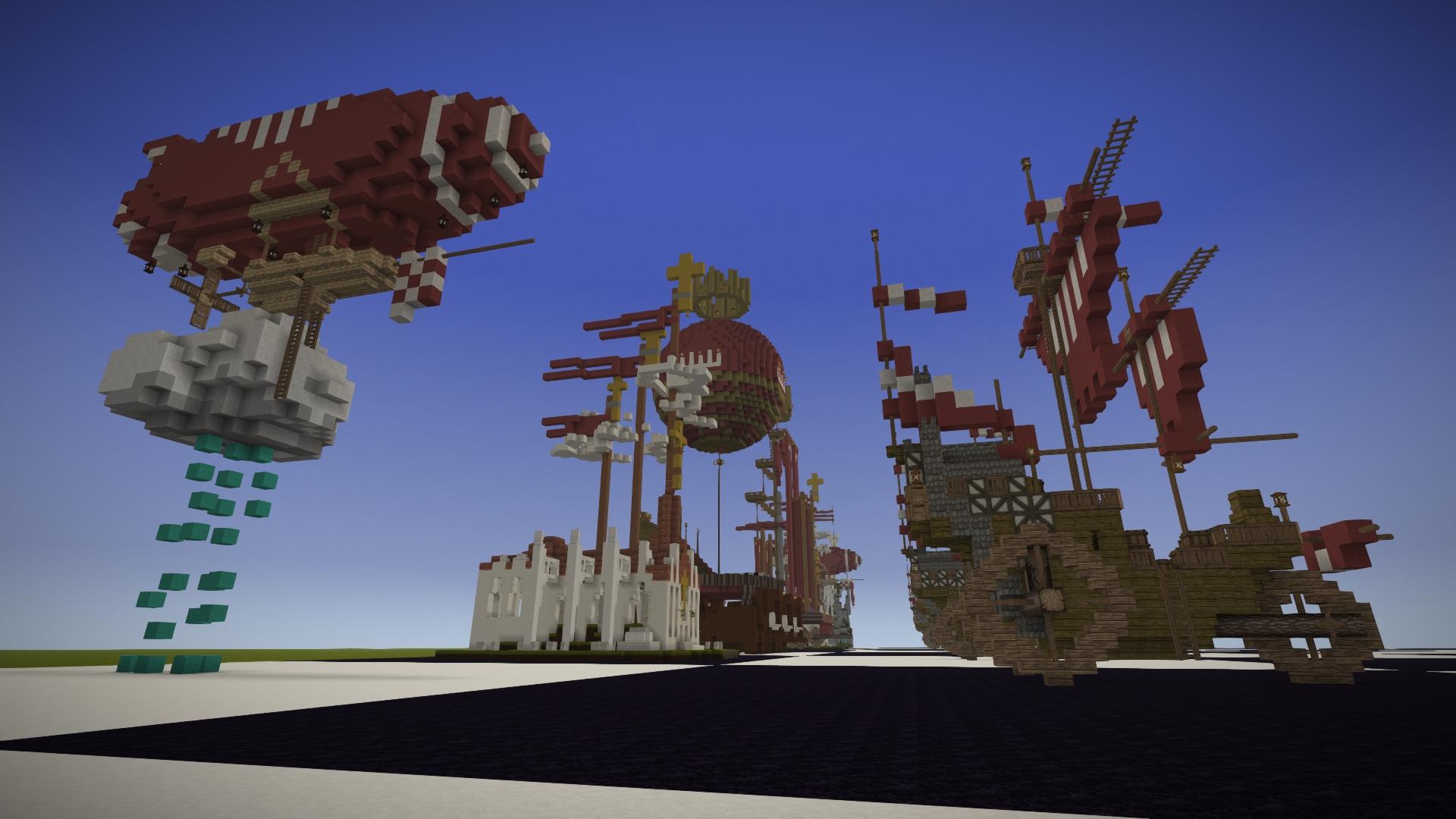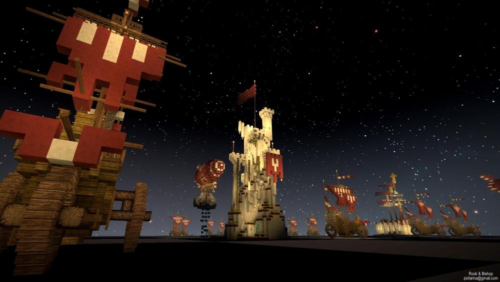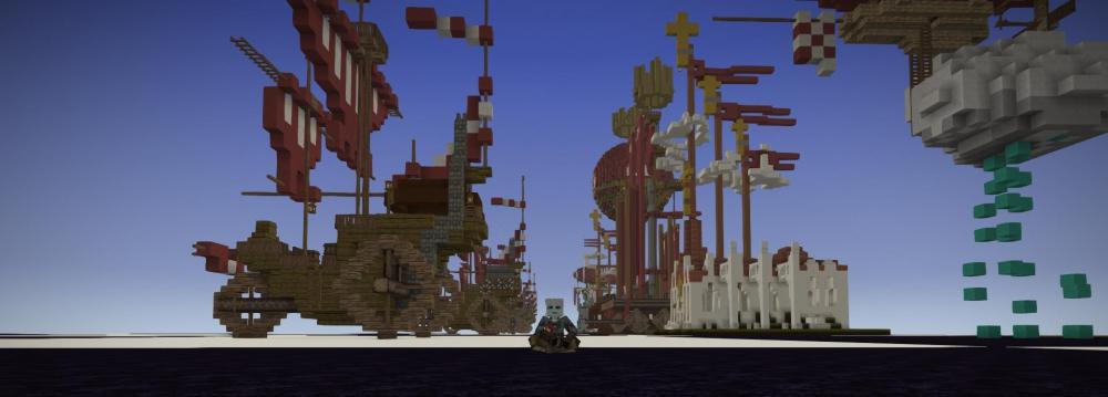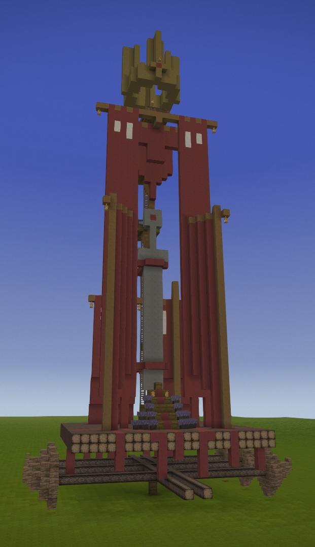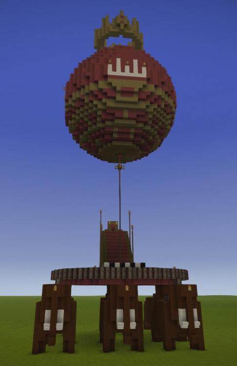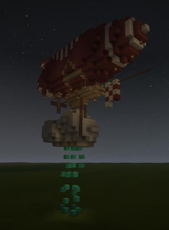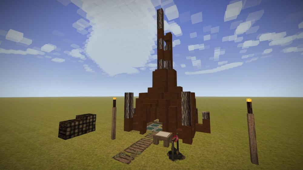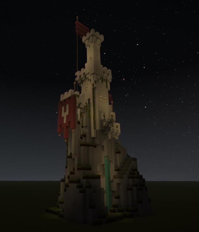 My second attempt at an erupting Volcano. Embers rather than Lava is used to create the comic book style eruption plume, and bloom is set to about 80% to make it glow. The height is about 250 blocks. The plumes cloud is made from a mixture of lake and glacier ice to create a transparency. In my first attempt I used a mixture of dark creative blocks flecked with red torches, and that approach worked better.