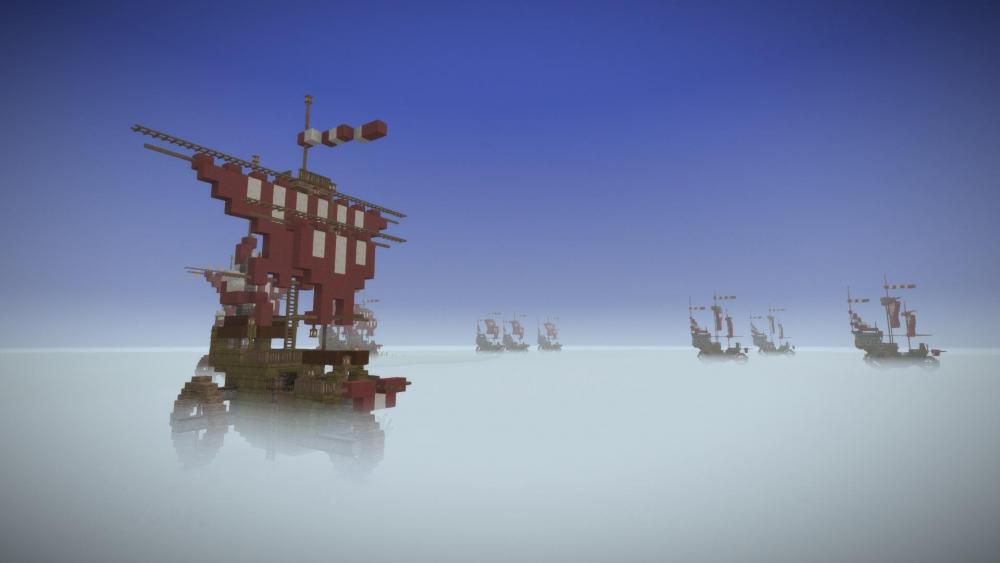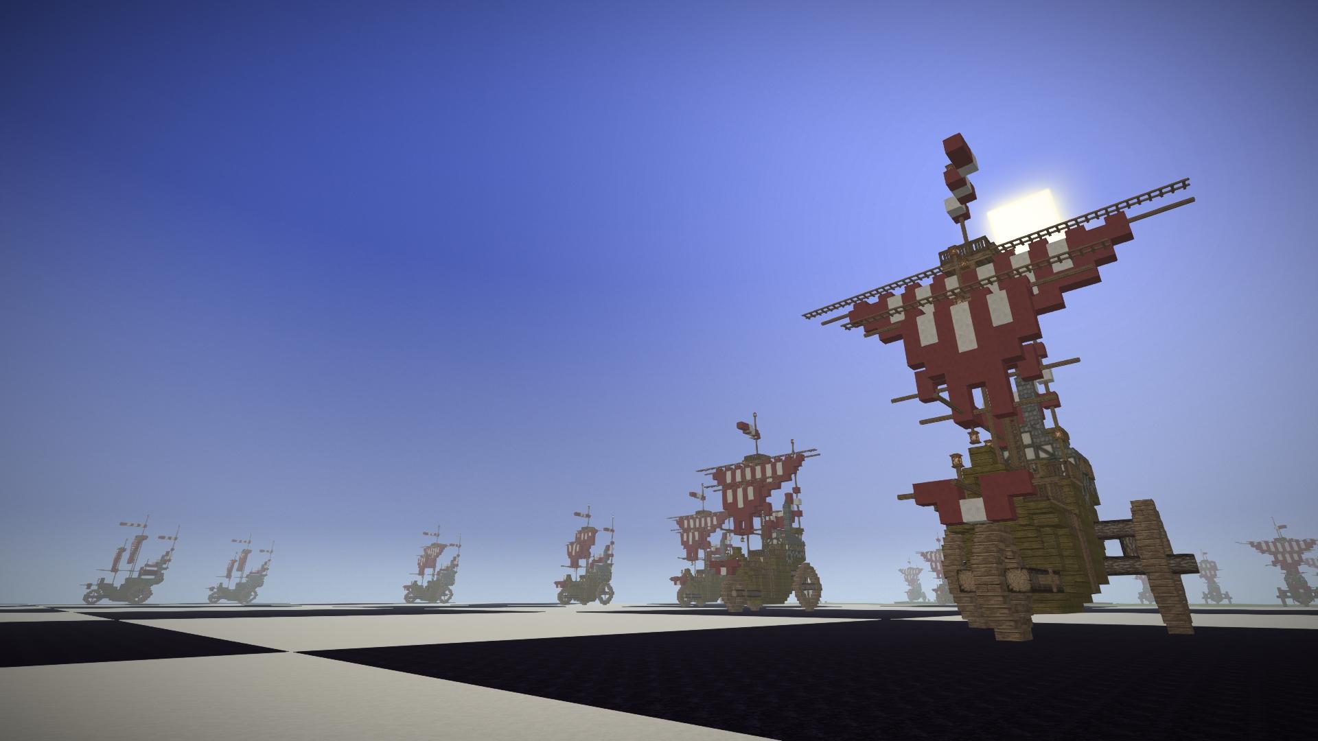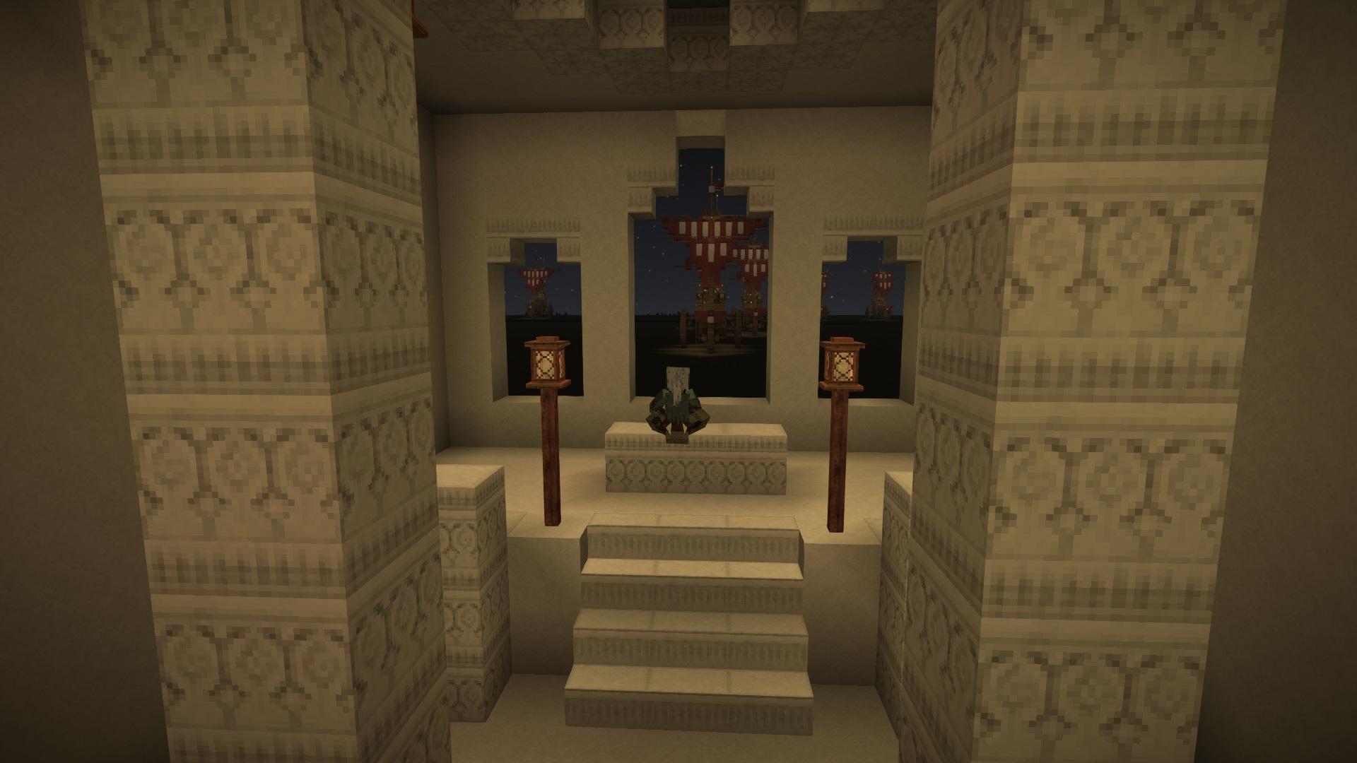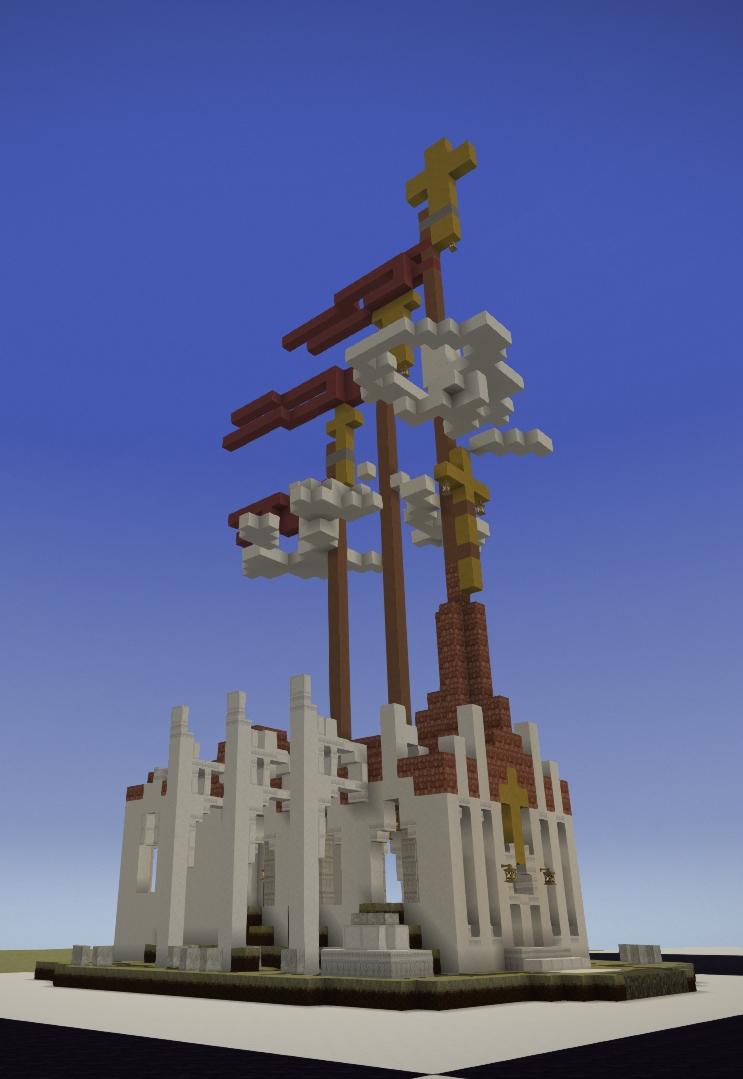 My second attempt at an erupting Volcano. Embers rather than Lava is used to create the comic book style eruption plume, and bloom is set to about 80% to make it glow. The height is about 250 blocks. The plumes cloud is made from a mixture of lake and glacier ice to create a transparency. In my first attempt I used a mixture of dark creative blocks flecked with red torches, and that approach worked better.