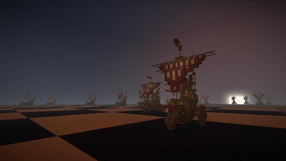 Edit: Tyvm. I will send you a copy when its complete. Interesting that you like like different ones than me. Piazza dei Miricolo, Pisa. Bishop and pawns are my favorite, but at night, the Knight, because the creative block blue used for the rain drops look nice in the dark. I will use this space for more pictures. 1. Another angle of the Knight 2. View of pawns from the Basilica interior. 3. A view of the Queens train and Kings chess board. 4. Pawn Dawn (bah-dum-tish!) 5. Play suspended due to weather conditions!