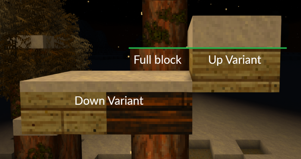 17. Are you sure you are looking at an up variation of your scrap slab and not a down variation? Hit Ctrl+F3 and look at the block in question. The block info alone is not too precise. For some reason the game will only display one iteration of the block as the asset code, which is not necessarily the correct one. up-snow variations are not created because their top is at the height of a full block. Snow will cumulate on top naturally. The down and cardinal direction versions are special cases, because they are lower or smaller than normal blocks, which would result in strange results, floating snow and the like. Anyway, if you added a scrap texture for the plankslab correctly (/texture/block/wood/planks/scrap.png) you shouldn't get any errors. What do the logs tell you? Texture issues should pop up in client-main, but it's always good to keep an eye on server-main as well.