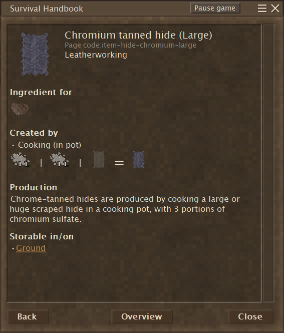 Try "transitionedHours" instead. "freshHours" is the amount of time the hide will stay fresh (5 * 24 = 120). "label" is the wrong key to use. It's a variable custom to the crate. Or maybe not. I'd probably start with This is all just theoretical. I wish I could help more, but my extremely-soon-to-be-replaced-computer makes surfing an obnoxiously annoying past-time. I can pretty much forget about doing any modding. Or forget anything I wrote instead. If it works, it works.
