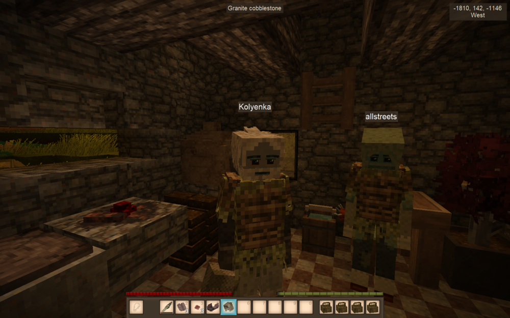 This has been happening for a while now (since the big update) but I only just thought to report it. Playing on a LAN with one other person, and sometimes one of us turns invisible to the other, i.e., I won't appear on my sister's screen even though she's looking straight at me. I can see myself fine though (in both 1st and 3rd person). The affected person disconnecting and reconnecting fixes it, although it inevitably happens again a few hours later.