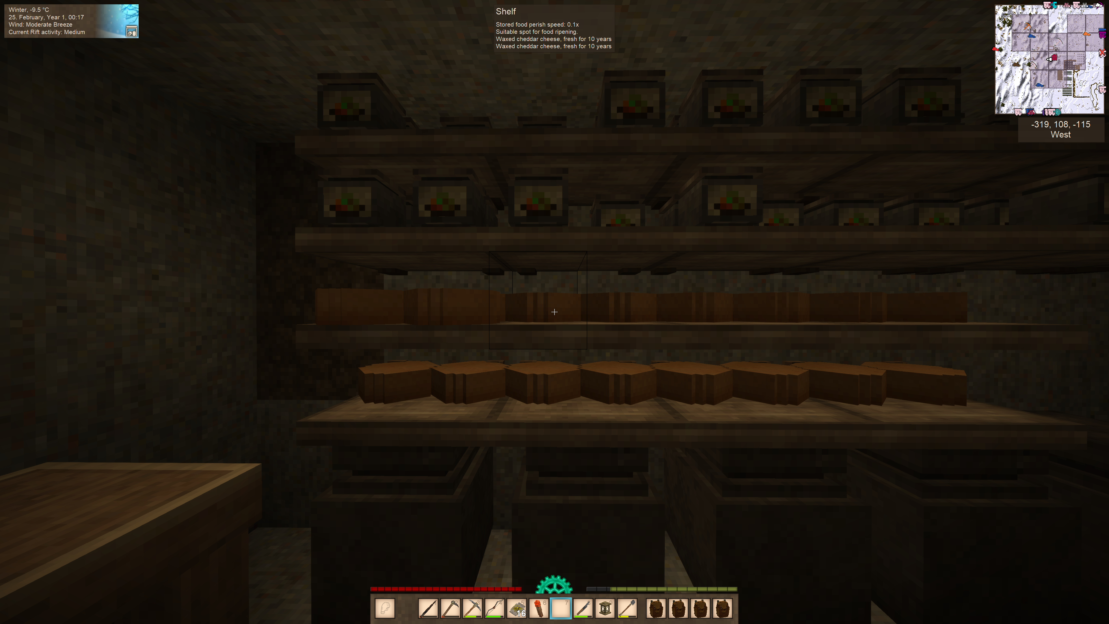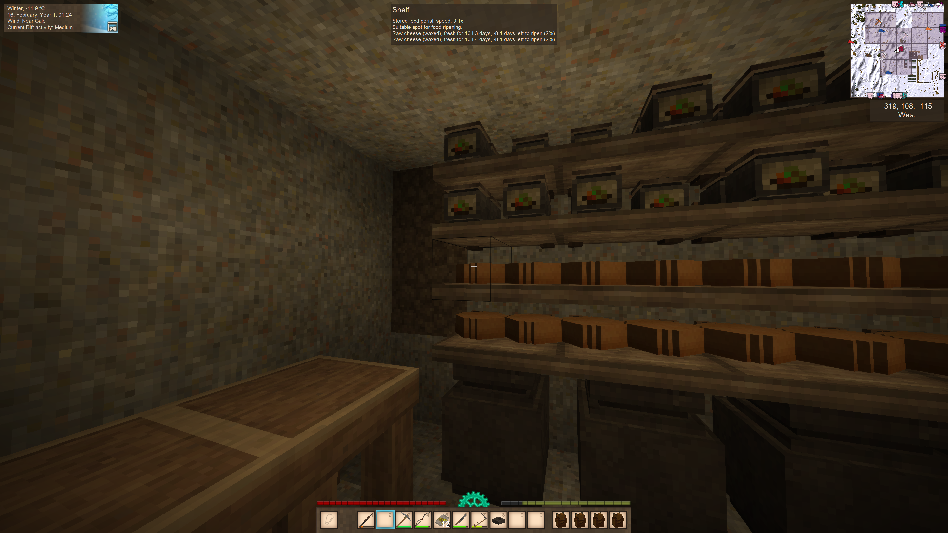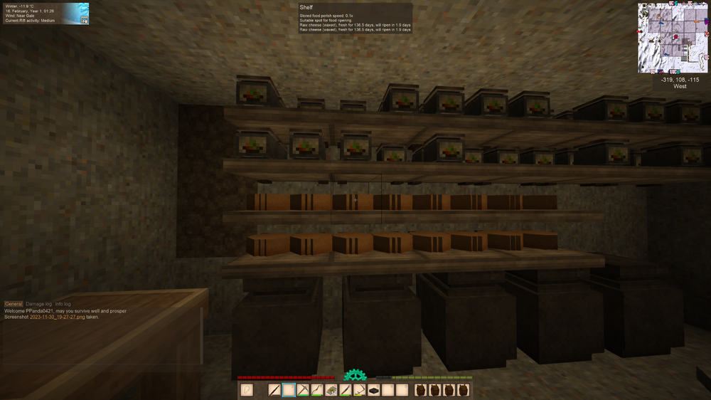 6. Hi, I'm making cheese and I left the raw cheese (waxed_ on the shelf to ripen. I forgot about them and came back to -days to ripen. Isn't it supposed to be cheddar cheese by now? How do I fix this? Screenshots attached. The first batch is negative days to ripen. The next batch is ~2 days away. Version 1.18.15 (Stable) Mods: Animal Cages. Carry On CommonLib Farmland Drops Soil Hud Clock Pet AI Player Corpse ProspectorInfo Wolf Taming Thanks