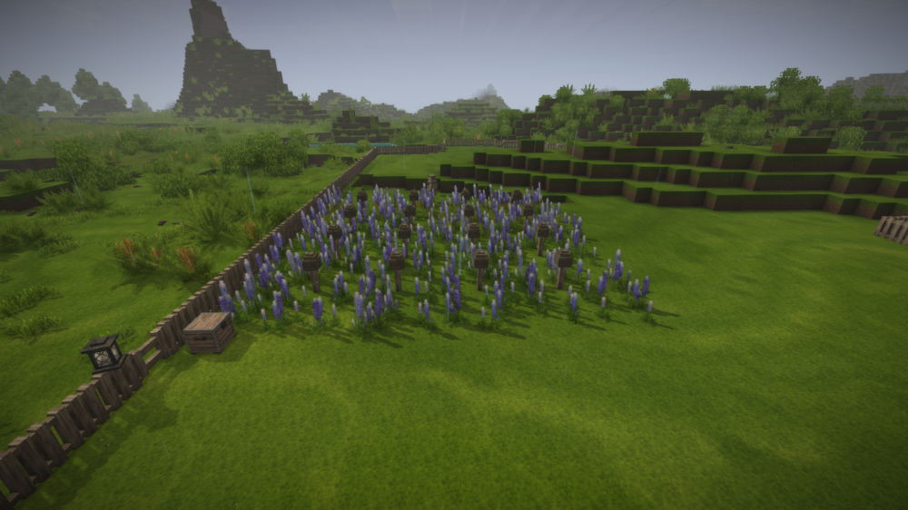 So I have my Skeps set up like this: (facing south) The minimap would show something like this: Grey squares are skeps, purple squares are Blue Lupins. For some reason, there's a wild difference between the "nearby flower" readings for all similar skeps. For example, the edge of skeps on the right side (West) of the in-game screen shot display a "nearby flowers" of (from North to South) 91, 118, 128, and 101. As I understand it, Skeps are meant to read flowers as 'nearby' if they are within 7 blocks. There's no flowers to the North, South, or West, and the East-side fence is over 10 blocks from the West-most row of Skeps, so why is there this variance? I understand the inner two are going to have more flowers than the corners, but 91 != 101, and 118 != 128.