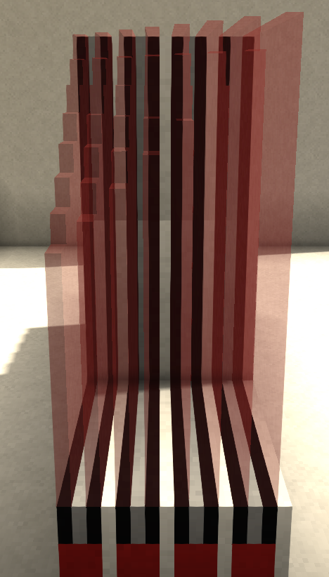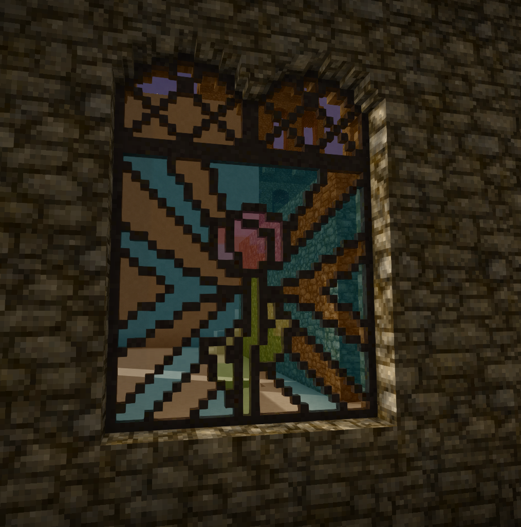 Vintage Story is a wonderfully versatile game that allows the player to build anything that they have mind to build. From extravagant castles or cathedrals to simple starter houses that are made from anything that can be found. Vintage Story, however unlike other survival block games, has the chisel that allows the possibility of extremely detailed builds within a 16 by 16 by 16 voxel block of space. One of things that can be achieved is custom glass windows (Image 1) and stained glass windows as well (Image 2). However that is not all stained glass can do, this guide will explain various techniques and methods for stain glass builds for the community of Vintage Story to turn your stained glass builds into works of art and beyond (Image 3). The Basics of Stained Glass Blending Block That Can Be Used - In the game the blocks that currently are best used for stained glass are the full blocks of Red, Green, Blue, Yellow, Brown, Violet, Pink, Vintage, Quartz, Smoky, and Clear Glass Blocks. Their Half Variants also can be used in chiseling stained glass, However it will give the player half the material voxels to a full block (exactly 2,048 voxel in total if you wanted to know) perfect for survival players who want to save material. Another transparent block that can be used in stained glass is Lake Ice and Glacier Ice which are extremely versatile but overpowering too other stained glass colors (More on that in Spacing and Transparency). Mixing of Colors - Tip: Best way to understand blending colors in stained glass is to start with the primary colors of Red, Blue and Yellow and make their Secondary colors, example in (Image 4). All given values are the original block color are provided by Lawn on the (RBGA) Red, Blue, Green and Alpha (Quote). All excepted two blocks that are have transparency 30%. The working theory is 15% is equal to one face of a glass block or a panel this only possible when two differing types of glass panels are connected more about this with Panel Ratios. This also will effect the color produced when paired with additional stained glass. The exceptions are the Glacier Ice 70% and Lake Ice (30% < X < 70%) due to the their extreme opacity both will overpower all other colors when in a even ratio. Also pairing panels into section is very helpful in keeping track of the colors being used. (Images) Four pairs of Red and Blue Glass making purple sheet of glass. Spacing and Transparency - Stained Glass requires spacing in-between the planal for blending to be visible. (Image 5: has four pairs of panels all red stained glass or eight panels in total). Blending will Not occur if the spacing is occupied by any other block, glass especially (Images 6-7). The amount of panels will affect the transparency, (Image 6) one pair to two pairs of stained glass is still see through anything above two pairs is not visible. Only light sources or other colored glass can be seen through when three to four pairs are used (Image 8). Tip : If the desired transparency that a player wants to achieve is a cloudily murky light blue or white color Glacier Ice or Lake Ice are the ideal choice. Techniques: Constant Color-Stained Glass - If build best to use an even number of panels color to produce a consistent color no matter the face front or back. To retain a constant color from close up or further away alternate each pair - for better results use a limited choice of colored panel pairs usually two colors - the better color blending will occur. Panel Ratios - Panel ratio provides a larger selection of color choices from pairing panels. However it is difficult to do (Working on). Holographic Stained Glass (Working on) - A technique that causes a designs or patterns to have more depth or the desired effect of a still image to have movement. Review Builds by Lawn. Work on Test Neptune. Blending of Light Blocks (Working On) Contributors, Cy9miner and Lawn