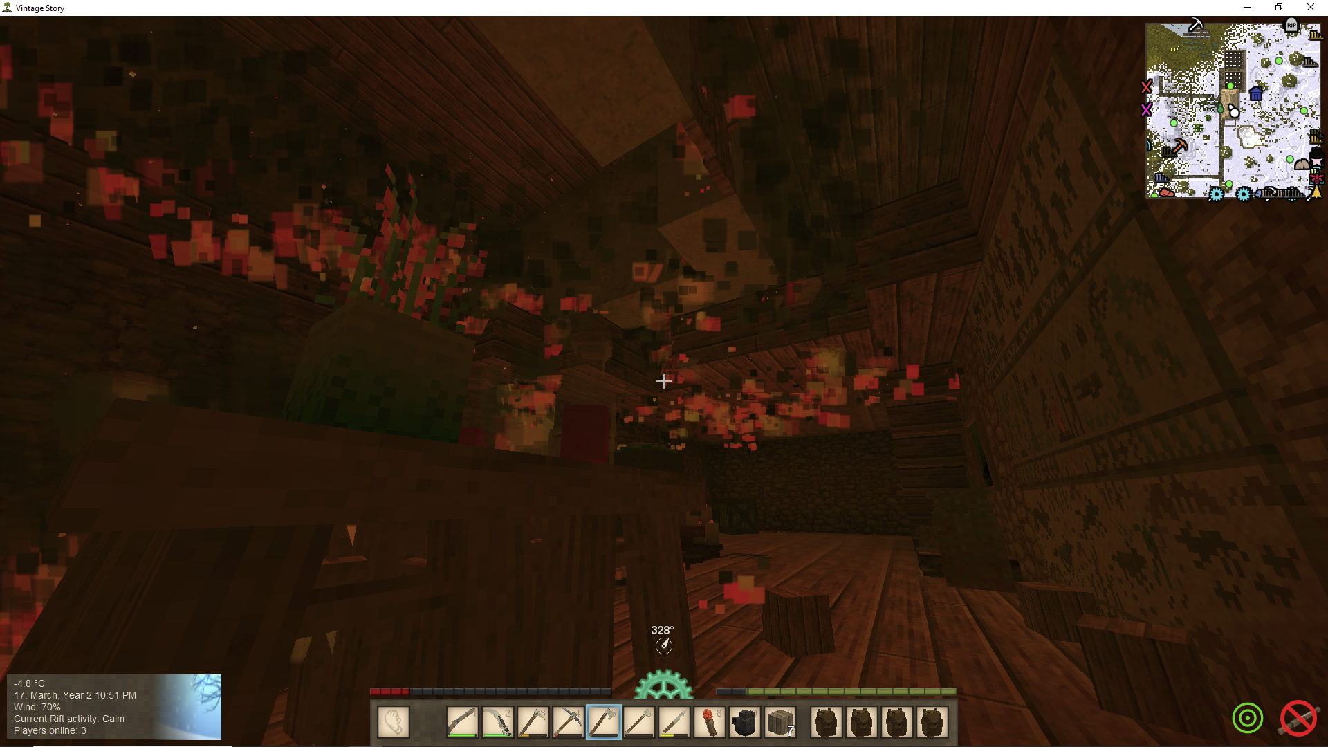 1. Just lost at least 30 trunks of stuff in the attic (basically everything from a 3 ingame year playthrough except ore which was stored somewhere else) due to a slightly misplaced cursor lighting the counter on fire instead of the cooking pot. Couldn't put it out so my programming of indestructible terraria chests and fireproof minecraft chests told me to just wait and replace the floor. Until every single shelf, barrel, trunk, etc in the house broke and dropped all my stuff to the ground. Was only able to make 4 trunks and store that much before my whole playthrough worth of stuff despawned. Lesson learned but considering how harsh I was punished I'm probably never gonna play on a server with fire spread again.