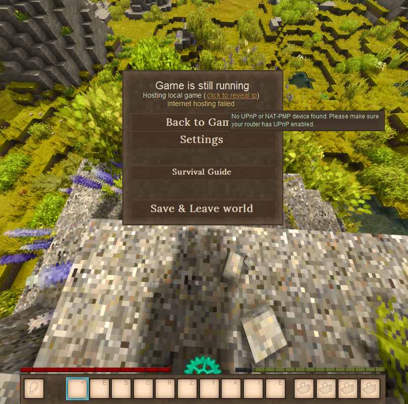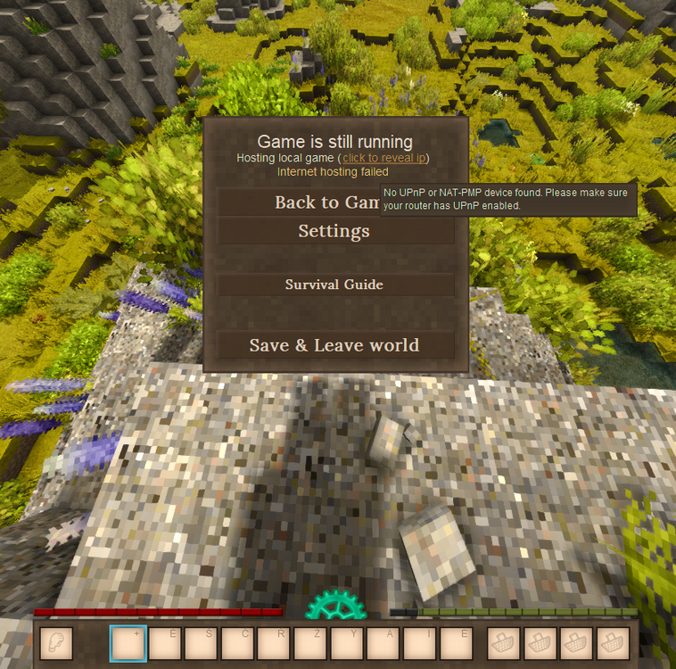 Hi guys, i am new to the game, i bought it yesterday, and i bought it with my friend and we wanted to play together and have good experience, but so far we had issues with connection, i have been trying to connect to my friend, hes hosting the server using the "open to lan" then "open to internet" way, i think we did it right, he sended me his ip and i tried connecting to that, but it didnt worked and this popped up, we also tried the other ip, that the game shows you when you launch the server, also didnt work, we didnt know what to do, so we switched it up, and i tried hosting, but i have issue with UPnP, and it didnt work aswelll, i dont have UPnP turned on in my ethernet, and i dont really know how to turn it on, so yeah, we were thinking maybe we can go play on some community server, but all of them have either mods, or are just not what we lookin for, only good one is the official public server, but right now, theres winter, and us as noobs, we keep dying to cold, idk we can maybe wait until tuesday, thats when will the winter end on the server, but idk, would be glad if anyone had some info on this, thanks for reading and i wish you nice day