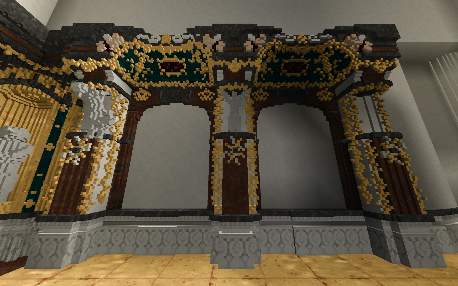 so far its taken about 3 days, a few hours a day with all the materials provided by the community. I really just wing it, no testing and only a couple irl pictures for inspiration. I specifically looked at Asamkirche because of the smaller scale and higher level of detail. Some baroque structures only detail ceilings, trim and focus pieces while ignoring the floors and walls, Asamkirche does an exeptional job at detailing the walls, but I am yet to find a really good baroque style floor.