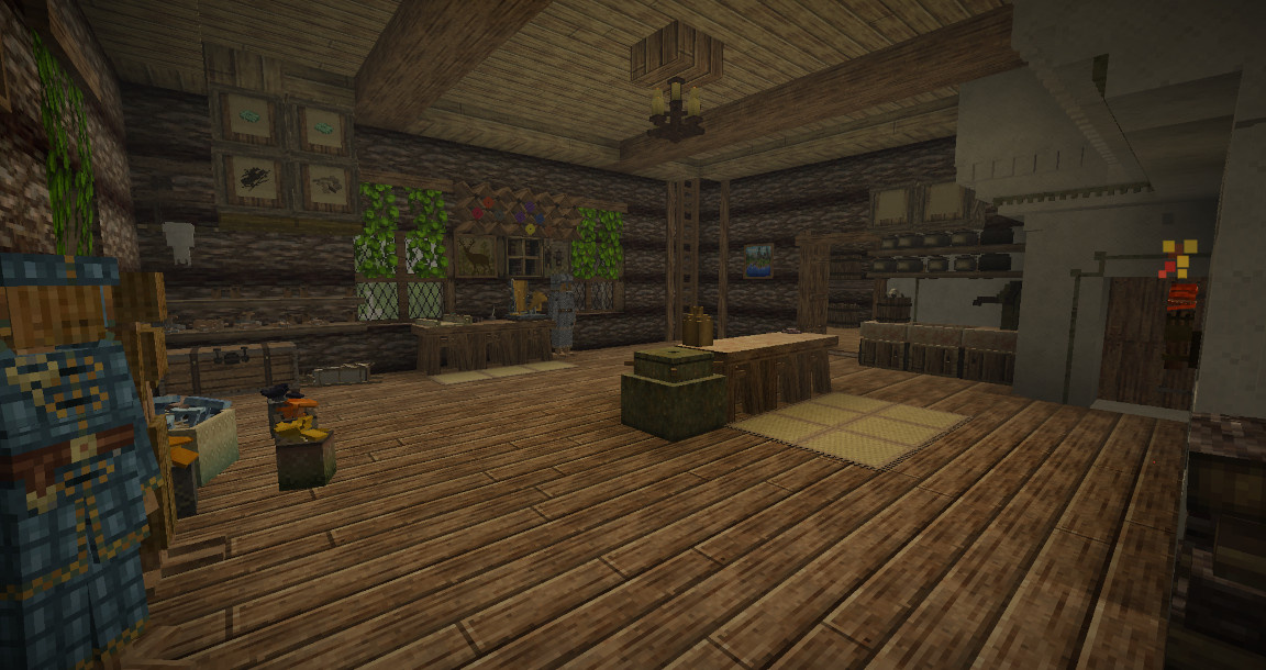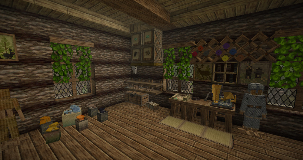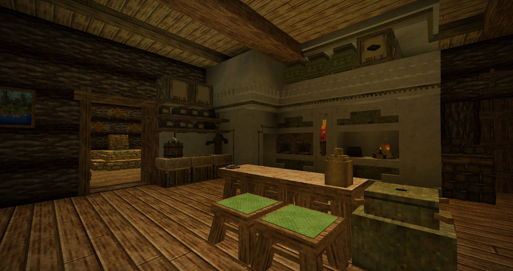 A fully functional kitchen cupboard: the doors open, revealing shelves for storage. The pattern on the floor is made with a chisel. You can see the edge of the table - my friend made it with a chisel. A prototype kitchen stove: the frying pan on top is decorative, but the oven door opens, revealing a cooking fire inside. Fox. Just a fox. The stove, water pump, and sink are all chiselled. The sink can be used for washing dishes; the refrigerator between it and the stove is a mini-cellar. It's not just a hammer and chisel. Opening doors can be made with a chisel mod. ...But if you want to see something grandiose that can be made with a chisel, check out the "Cathedral" thread by 7Embre on the forum.