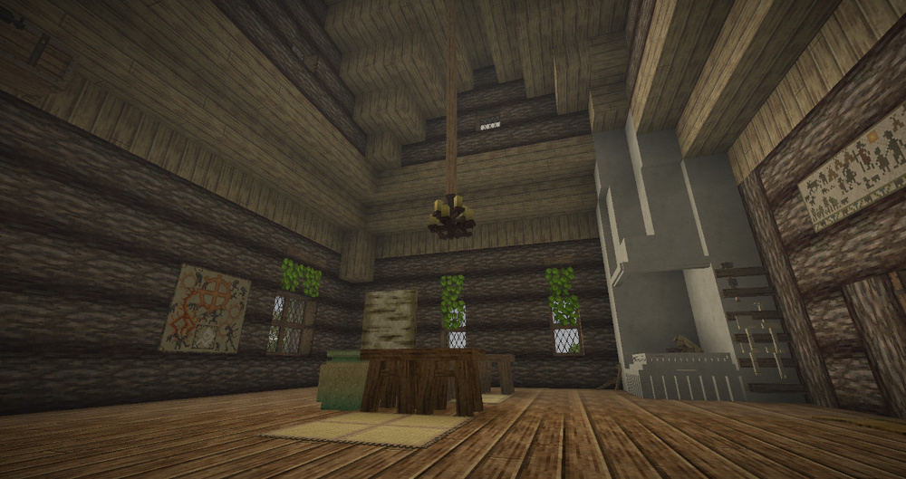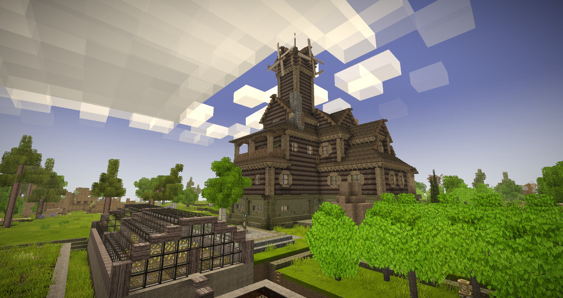 Top floor. Carving workshop (first picture) and bedroom, bedroom not yet finished. Gallery. View of the house from the backyard - a forge, museum and bedroom with a balcony have been added, but the exterior finishing is not yet finished everywhere. In the foreground is a greenhouse and an apple orchard.