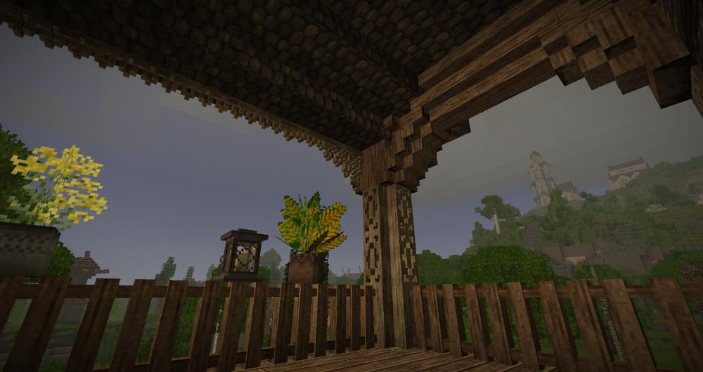 A fully functional kitchen cupboard: the doors open, revealing shelves for storage. The pattern on the floor is made with a chisel. You can see the edge of the table - my friend made it with a chisel. A prototype kitchen stove: the frying pan on top is decorative, but the oven door opens, revealing a cooking fire inside. Fox. Just a fox. The stove, water pump, and sink are all chiselled. The sink can be used for washing dishes; the refrigerator between it and the stove is a mini-cellar. It's not just a hammer and chisel. Opening doors can be made with a chisel mod. ...But if you want to see something grandiose that can be made with a chisel, check out the "Cathedral" thread by 7Embre on the forum.
