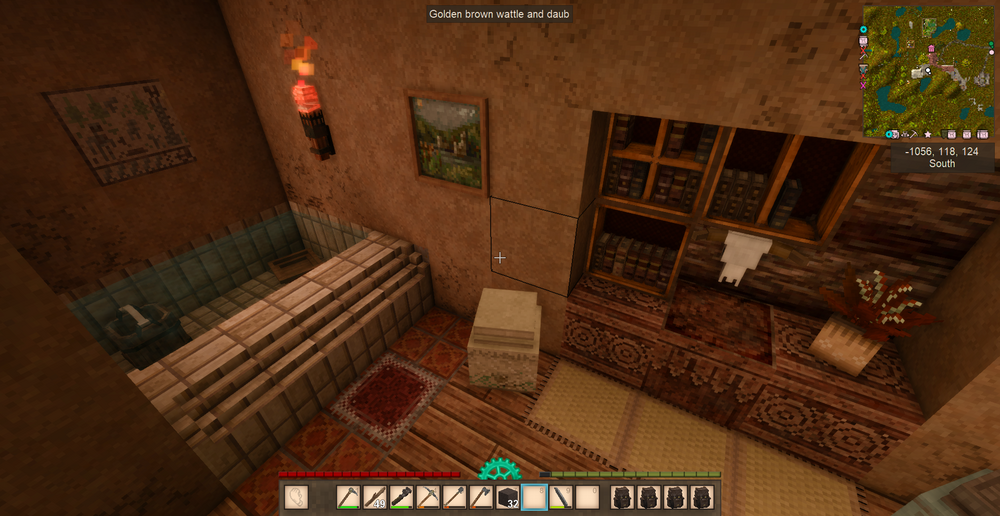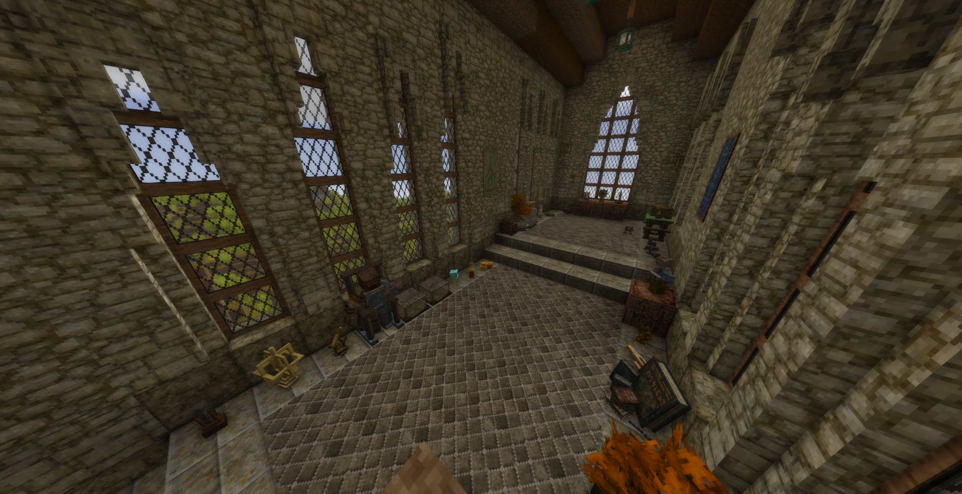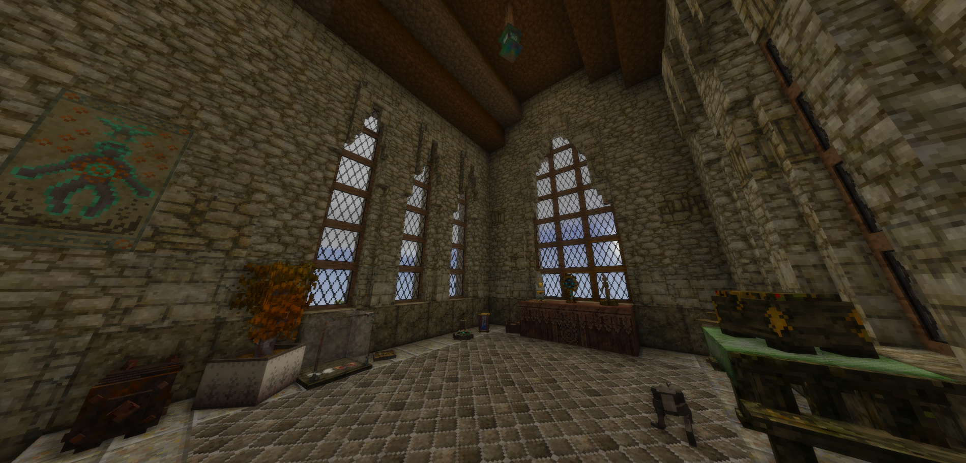 This is my work in progress room to display all my fun loot items that were crowding up my house! This is my survival world of a few months that I have put 300 hours in lol. I gutted a giant ruin to get all these limestone blocks. I need to work on the roof and arrange the items on tables, add some carpets, and maybe chisels some shelves.