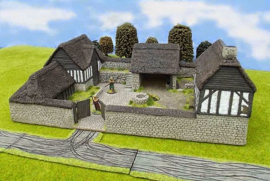 Walled homesteads as the largest settlement you could find would make some sense compared to an open village like in Minecraft due to the better security it would provide against both wild animals and Drifter spawns at night. A simple wooden palisade or cobblestone wall surrounding one or two buildings, a well and a single crop field/workshop/open courtyard wouldn't take up that much space. The buildings could even incorporate the palisade as their external facing walls. These would be the upper end and rarest spawns, with anywhere between 4-6 villagers. Far more common would be single building cabins with an attached fenced garden that only have one to two villagers living in them.