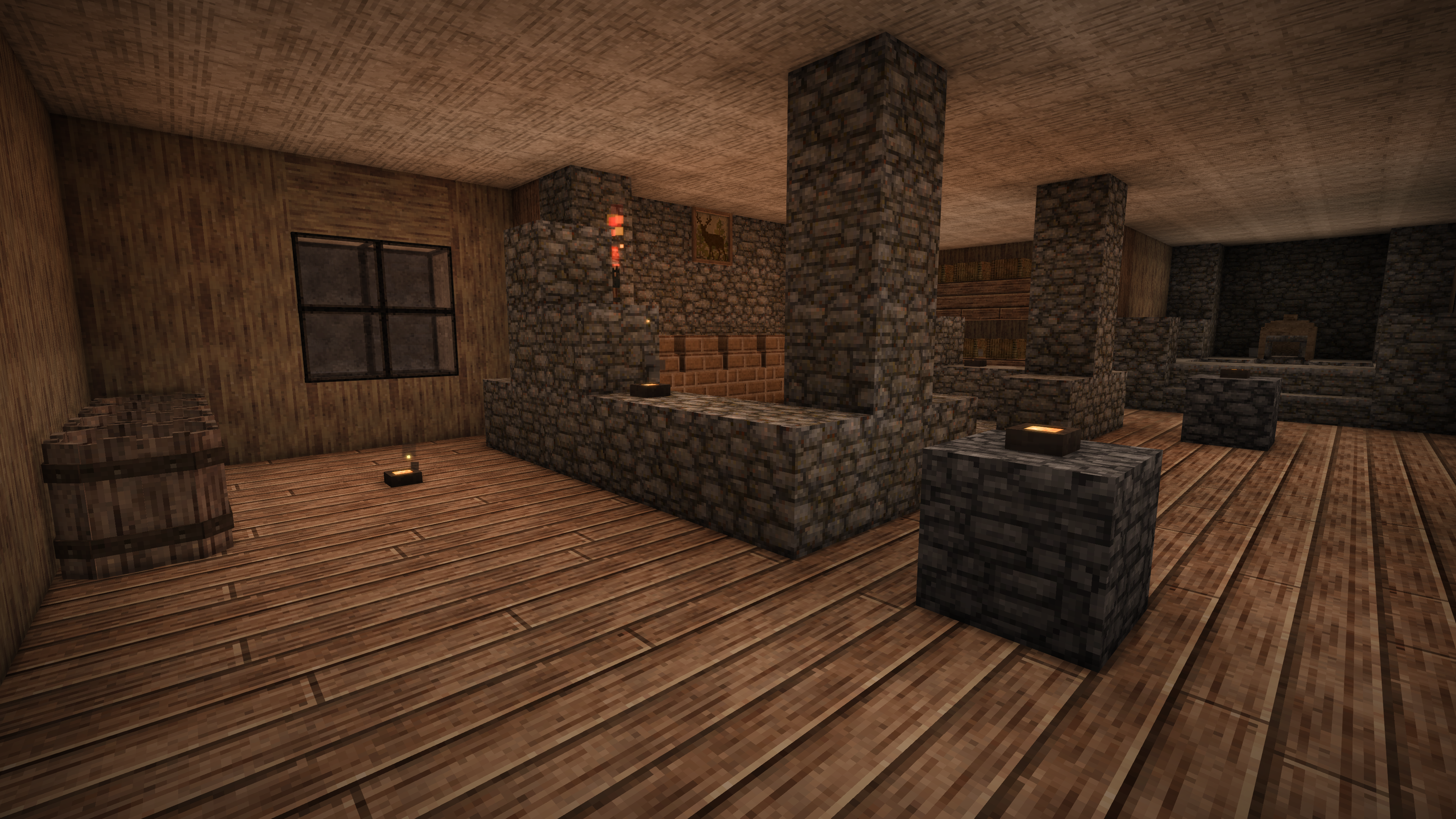 Post 100 hours update: Shortly after posting this, we struck multiple veins of iron and silver and began processing it, too. Still on my/our second winter. So we had a massively slow start (mostly because I initially focused on future planning/build design/mass terraforming) followed by rolling down the hill. I also got a bunch of quartz which is very easy to find and made basic windows which I'll upgrade later. We made a lantern. At last...proper-ish lighting! I streamlined the first floor, converted one room into a shared quarters, and turned the other into a staircase to the second floor. For the second floor, I added some spaces for processing, cooking, and a super forge. We found various rocks and stuff and now we've got barrels of various mixtures. The idea is that we use the second floor for more involved resource processing and additional storage, and the first floor for simple, expedient stuff. I'll probably add a warehouse to the cellar at some point for bulk storage once we need it. After I finish the roof, we might use that as a personal space. It's still not fancy because I'm saving furnishing/decoration, and interior/exterior chiseling and flair for when I've got all the walls, windows, and a completed roof. Since I'm still moving things around, it's easier to use simple block interiors for now. So, just to be clear, I'm not showing this off as an example of build/deco expertise. Not yet, anyway.- 1 reply