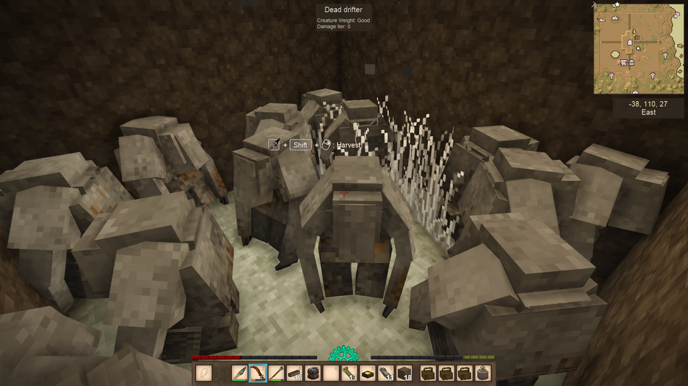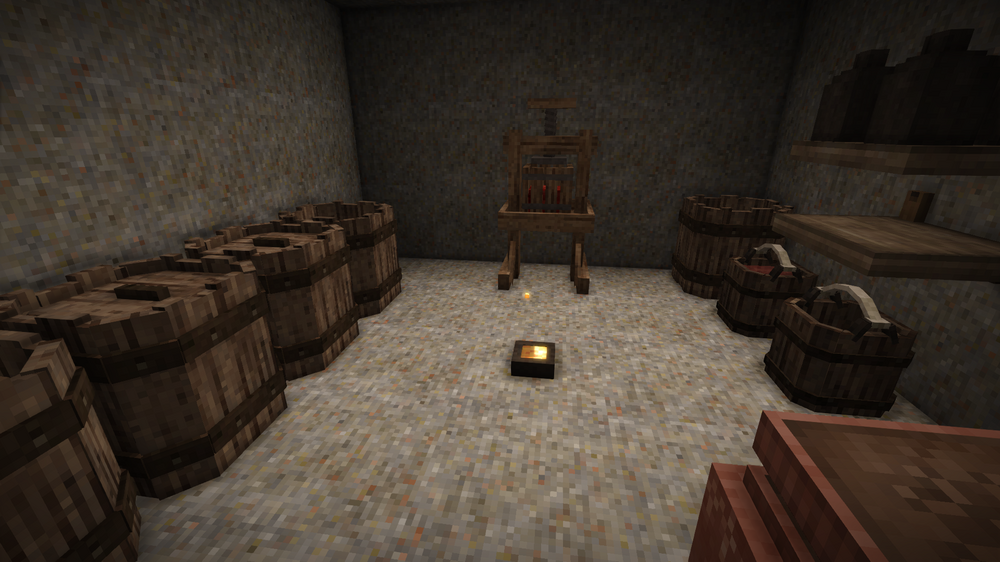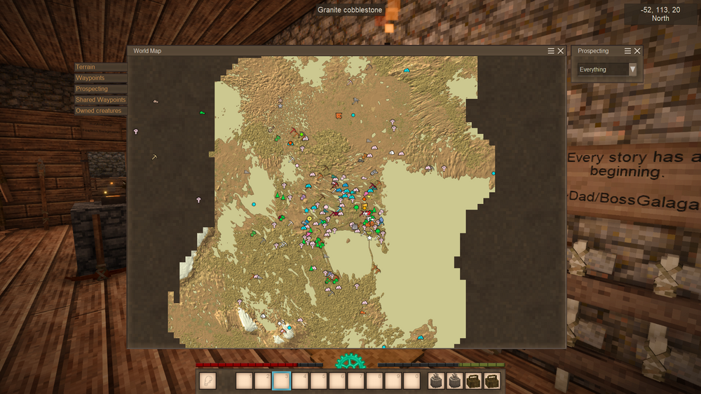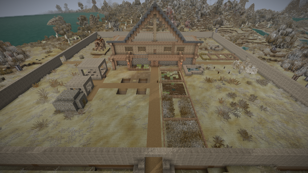 This is the first world I wintered through. I'm in November of my second winter now. I played this on and off with a friend who bought the game a day after I did. We had been talking about buying it and we're both fans of creative games and roguelike and other challenging games. I've also played this in VR with Virtual Desktop. In this pic, I was playing VS in a virtual environment...ironically while playing it on a laptop. Usually, I play it with a giant curved screen that makes you feel like you're inside the game. Even though I had a little practice, I still had a rough start. Instead of preparing for my first winter, I scouted out a spot, then marked out an 81x81 area. I dug up a mountain of dirt to flatten it and then a few more mountains to create a wall and a manor out of rammed earth while starving to death repeatedly. My friend popped on and started helping out with clay and tool making. This was just before my first winter. We lived off of scraps during the first winter. Now, here I am during my second winter. I've got Sasha, a furniture trader who keeps trying to sell me wallpaper, pottery kiln, charcoal kiln, ground shed/cellar, drifter traps, crops, fruit trees, animal pens (chickens and boars), a pond full of cattails behind the manor, and a fairly dangerous vertical cave mouth crawling with baddies at the bottom that I've put a little wall around. Also, I'm working on finishing the third floor/roof now. On the inside, I've got a cooking/smithing area, two personal rooms, storage, an underground cellar with three rooms at the moment, food storage, fruit press with juice/wine storage, and a room for curing pelts. I'm just starting to move overflow storage and additional processing equipment (oven/grinder/etc.) to the second floor. I messed up by planting flax under my 2F deck, so I had to temporarily remove a portion of it. I walked a long way with that collapsed chest, only to realize once I got it back home that it was unusable. I was fortunate to find a wall full of aged crates from surface dives near my base. Not-So-ProTip: You can lean tongs against a single block as long as there's a one-block tool next to it. I went from starving last winter, and now I've got over 100L of cranberry wine and then some. I've got nearly a full chest of grain, full chest of various veg, and one and a half chests of mushrooms. Gonna be cooking up porridge and getting drunk on cranberry wine. I have some very basic drifter pits. I still have to reconfigure them, but they've yielded a decent amount of flax, temp and rust gears. I've found numerous quartz deposits but haven't had time to mine them for windows yet. You can't tell from the pics, but a third of the roof is done. I'll need a butt-ton more shale to finish it. It's still more economical than clay shingles at the moment. I'm thinking about converting the crops into one long, sectioned greenhouse. Also, the detailing, chiseling, and more advanced interior decoration, I'm leaving for later game. I started out the wall, manor, and additional floors in rammed earth, and I've just been upgrading as I go. I've been doing a lot of exploring and I've ravenously waypointed just about everything I can, veges, trees, ores, POIs, and other resources, including every cave entrance/hole in the ground I come across. I've found three translocators already near me with some light surface diving and activated one. When, we had been in the copper age long enough, my friend says we need tin, and I already had it marked and prospected. I previously prospected out a spot where I got a bunch of copper from and got a very great hit on tin, too. My friend has done a lot of mining, smithing, hunting, and deep cave diving, while I've been largely focused on building, collecting resources for the manor, and keeping us both stocked with tools and adventuring gear. My friend uses more valuable gear while I burn through donkloads of tools. He did lose some valuable tin bronze mining gear, falx, and other stuff (I hate replacing dishware!), but I've burned through donkloads of tools on terraforming and building. Right now, it really hurts losing those linen bags, though, because I only have a handful of flax seeds and messed up the second harvest a bit. (VS: Better with Buds Edition) I've started doing exploratory dives with little to no gear to scout for ores, danger, section off areas if I can, etc. then planning to go back later with better gear. We don't have much in the way of decent armor, and I know even with top tier gear, we can't just faceroll the depths the way you can make yourself essentially invincible in MC. I'm going to be doing more exploratory dives to search for ruins and ores and determine if a cave is worth risking good gear on. I'm getting the hang of mining now. It reminds me a bit of Firefall (RIP) and Project Entropia (a soulless moneypit). Before my first winter, I kept looking at the ceiling stacks of firewood I had collected and thinking that I'm going to need more for the winter. Every time, I'd take firewood, I'd be like, I'm gonna need more for the winter. Finally, I realized it was already winter. Same thing this winter. It's November now and I was just thinking I was going to need more firewood for winter. When I started, I focused on terraforming, building the base of the house, and collecting resources while starving to death repeatedly. Near the end of my first winter when I started finding more food, instead of eating it as soon as I got it, I starved to death, died, and stocked up the cellar until the end-end of the winter. Sure, it's kinda cheese but VS doesn't really make me feel bad for getting that little bit over it. Anyway, I'm immortal, right? I enjoy playing mostly vanilla survival in games like this. I've got a few mods that I feel are in keeping with the vanilla spirit: QP chisel tools, Carry on, more icons, and shared waypoints since I'm playing with a pal. I'm also playing with 70 or 80% landcover for oceans, can't