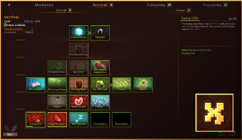 1. ModDB GitHub Add more bling to leveling with a new, shiny GUI. This is my first Vintage Story mod. I've always found xSkills default GUI to be a bit lacking. After delving into the VS's GUI library I understand why. So I use ImGui to remake the skill page GUI to be more "fantasy-like" and more satisfying to use. Limitations Because I use my own bitmap text renderer, the custom fonts only supports Latin character. If your locale is set to use non-Latin character, it will use default ImGui text renderer and text scaling might look off.