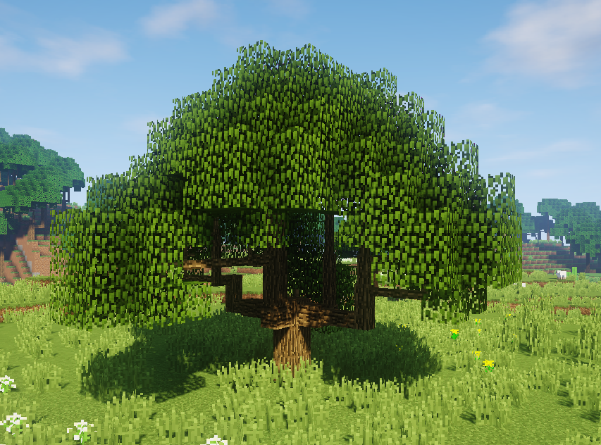 1. The trees in this game are already dynamic in that they grow and change height over time. I think you could take it one step further, though, using inspiration from a little known minecraft mod called Dynamic Trees. It basically overhauls how the trees look but keeps them faithful to their core shape, though in my opinion it does well to do away with large, tacky trunks. Rather, the trunks in dynamic trees thin with height just like real trees, eventually separating into branches. I think this tree design looks much better and would really help this game garner that more realistic aesthetic it's going for. For me, the juxtaposition between the finely detailed objects we can build and the thick, blocky trees in the environment is just really jarring. Truly a vestigial feature of early block game sandboxes.