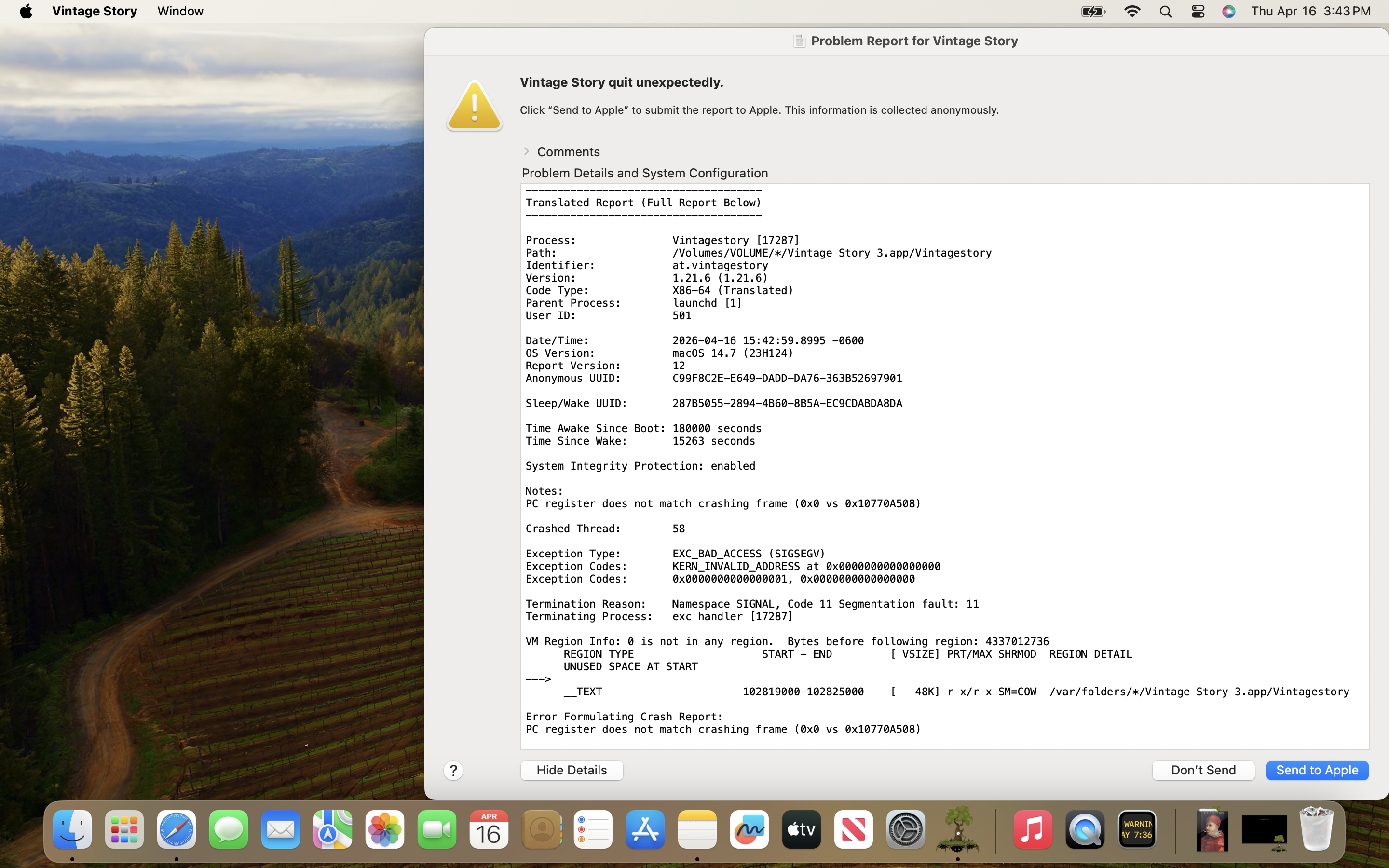 Hey thank you. I checked it out. Have the site opened in the toolbar and I'll keep it at the ready. Ive notice in my playing that more problems occur the closer to a stable release. Whatever thats supposed to mean. I just noticed that my computer failed to register this crash report anyways. It occurred directly after opening the game on the taskbar after a forced quit involving no response between my cursor being stuck on the discord server and not being to steer my ship while sailing. Force closed and then it crashed when reopened.
