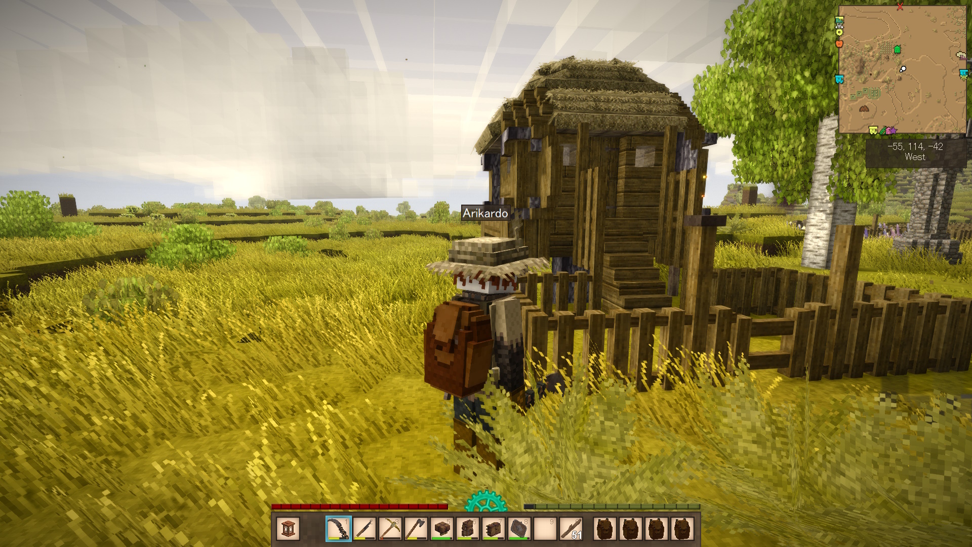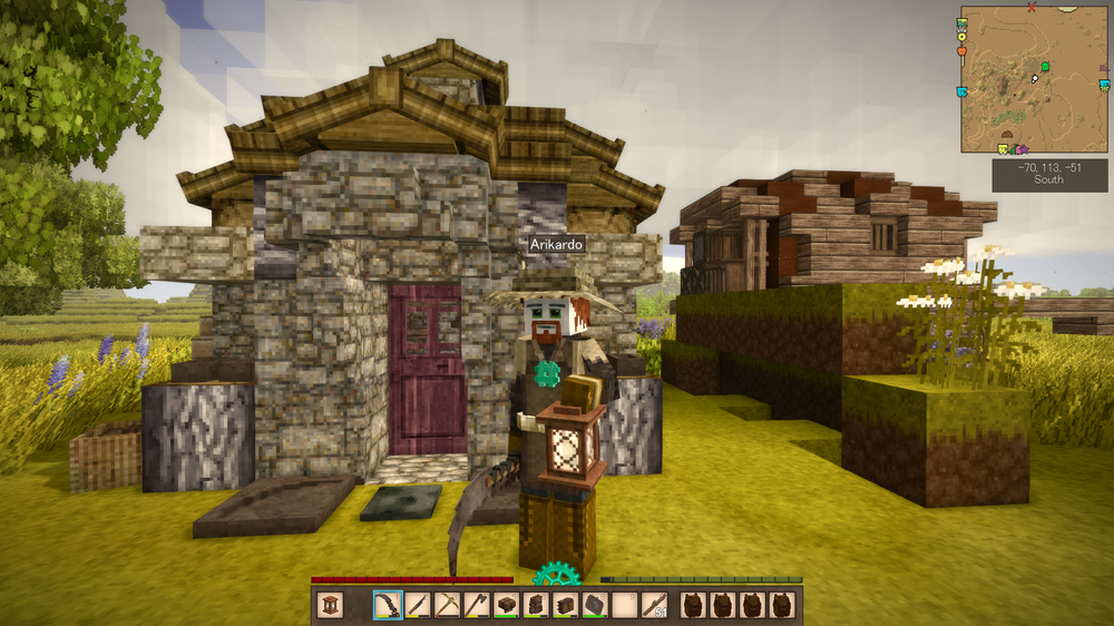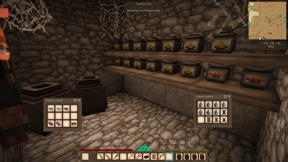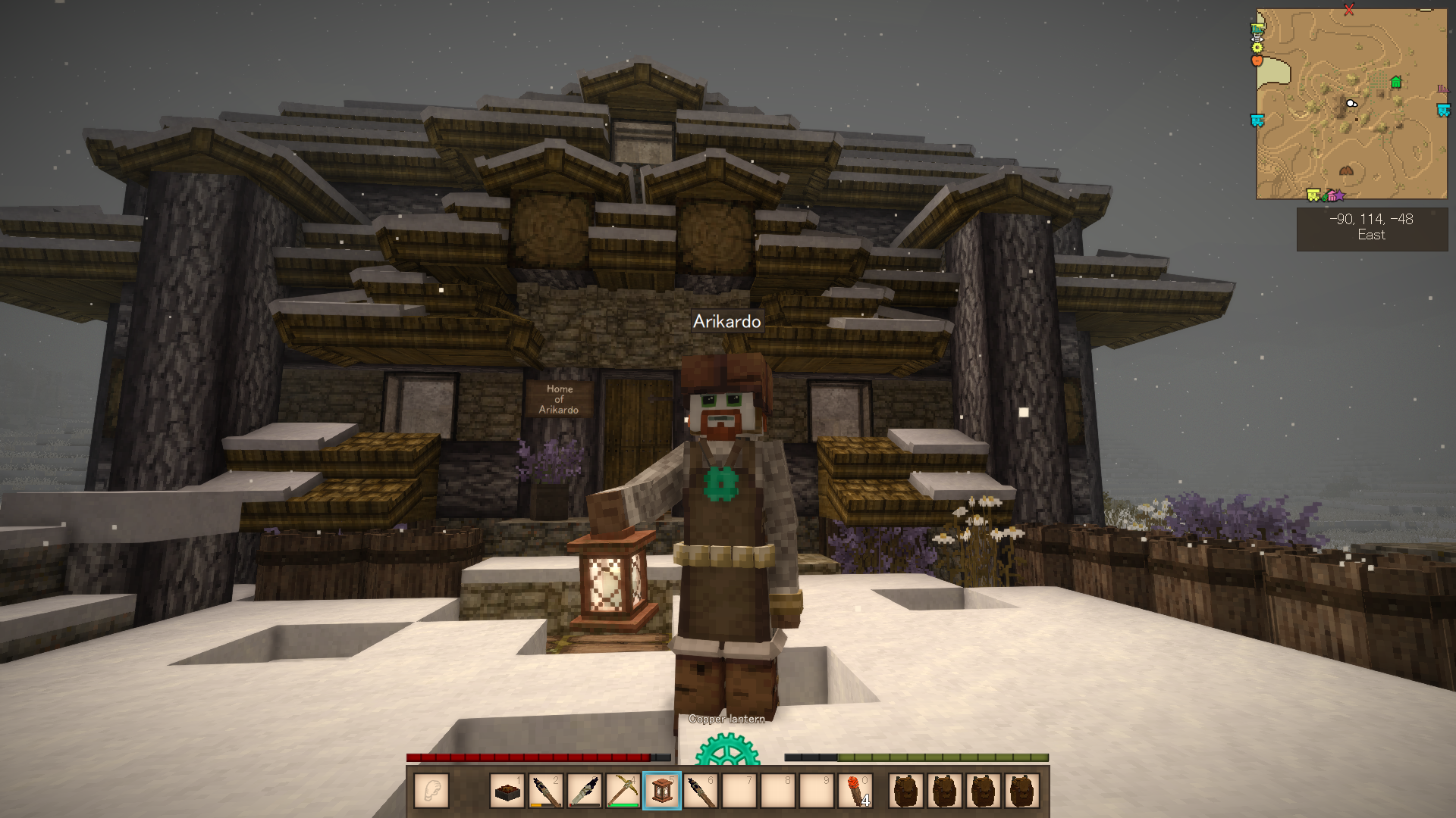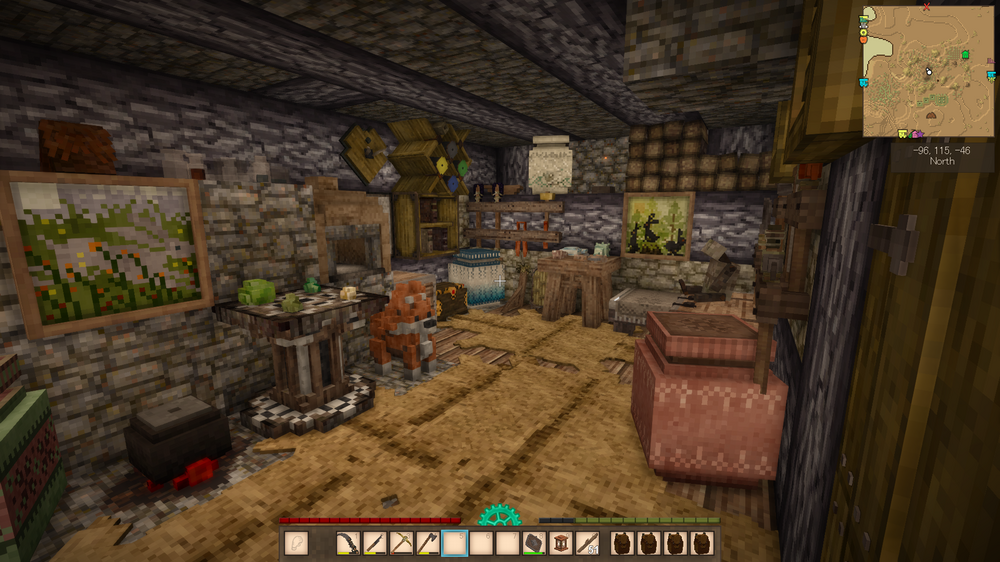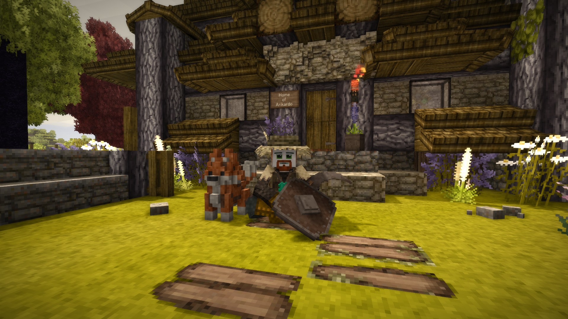 Hello to whom ever finds this. It has been a while since I came here. Not long for you perhaps but it as been a year for me in this world. And that is exactly why im writing to you today. Because today marks the day where I have survived and flourished in this world for a full year and I wanted to show you how far I have come in my adventure. This small hut is where it started. Built from the cobbled remains of my first ruins it was as much as a home as I could have managed at the time. It was just a 3x3x3 with an open side, not even a door, just enough space for a makeshift bed to keep me, my firepit and meager collection of personal items out of the rain. And it rained a lot. Aside from the rain on nights that were particularly bad with the creatures of the dark I had to board my entrance with dirt just to keep safe. Thankfully I have gotten past those days and have transformed the small hut into what is now my smithy where I forge my tools. I've been on copper for most of the year until finding tin during a random cave dive. Not much but enough to make something that lasts and even an extra pick to pursuade a local to tell me about a location of great significance. What that location holds however I have yet to discover. For most of my time I have lived off the land in my small and increasingly cramped box. Unbothered by the weather and unthinking of the food I would need. Meat cooked and eaten quickly with berries around every corner. It was already autumn and I have spent my time exploring rather than building for the future. But I realized I may have been reckless in this way of life. Winter was approaching fast and berries would not help me last through the winter, so not only would I have to put more meat on the table, I would also need a proper place to store it and for me to brave the cold if I wanted to make it through this. So mere days before the first snow fell I started the construcition on what should become my proper home in this place. At first just a ground floor.and a stairway into the ground to be my cellar. I had not begun working properly on a forge yet either so to keep the cold out for now I had to settle with a door I had bought from a Trader in the forest. Food was the greatest concern. All the meat I managed to hunt went into filling and sealing crocks now and at first the door was dedicated for the cellar to make sure it lasts while the front door was crudely put together from sticks. A measly bit of grain I found while exploring and a couple logs with sealed crocks on them where all had to show for when winter came. I feared for my survival and my stomach regularly growled at me. I thought I had made a mistake that would cost me dealy with my supplies seeming to get used up slightly faster than I could manage to restock them. And at the mere cost of being outside in the cold I thought I would not have enough to just stay indoors all winter. Something had to be done. It began with the quick remodelling of the freshly abandoned small home. I needed a forge to properly work on my home so it can keep me alive. Tools were made to facilitate just that. Shelves to better store food. And doors to properly keep out the cold. And the time that was not spent building was spent on gathering what little sustinance can be found in the cold. Proper hunting is tough when most of the large animals are nowhere to be seen and foraging for the last mushrooms in the snow was a race against the clock. But the future was looking brighter than I could have anticipated. Through good effort and a great helping of luck I got the survival aspect covered for now and food was at a stable supply. Stable enough that I found myself with time on my hands that I didn't think I could have in the winter. So I got to work doing more. It started with leather work. A few barrels outside for the start. Eventually with the proper completion of the house after completing the roof it moved inside into my new attic.Which like my forge has become my new workshop. The pelts I had until that point served well to keep me warm but something to guard myself against the hazards of the world would be made here along with more of the utensils a proper home would need like more pots, plates and anything you could imagine bulding with clay. And it was in this workshop that I made a new friend. You might call me a crazy person to consider the company of a carved rock to be comforting but it is a very good rock. Chiseld from a block of Bauxite Fauxite this friend was made. Though a faux fox it may be and even if its stoftness pales in comparison to the wild animals outside this one was special to me. And so this Rocky Fauxite Fox shall be my companion for the times to come. Home... This wasn't just a house anymore. Day by day it became not just just housing to shield me from the elements. It became something to call home. It was in the harshest of seasons but by the end of it I was not just surviving. I was beginning to thrive! On The winter was ending and my dedication was rewarded with another stroke of luck. In my exploration of a massive cave close to home and nearly getting lost and almost perishing in it twice I found an enormous and rich vein of magnetite iron. Going from struggling to make copper and having only the most valuable of tools made from the tinned bronze while most of my tools were still fashioned from stone and obsidian, I had immediately made the move to a full set of iron tools. And not only do I still have ore to spare after my long nights of forging, I still have yet to deplete the vein I have discovered. And there we are. The last month before the year has finished was my most productive so far. So lets take a look at what the place looks like now: . I have managed to gather a couple chickens. At first just one but by now they total three. They are still nervous around me but shall assist me in my endeavours of not starving so I will take care of them as best as I can. I have also begun fa