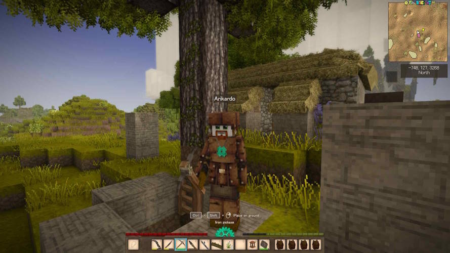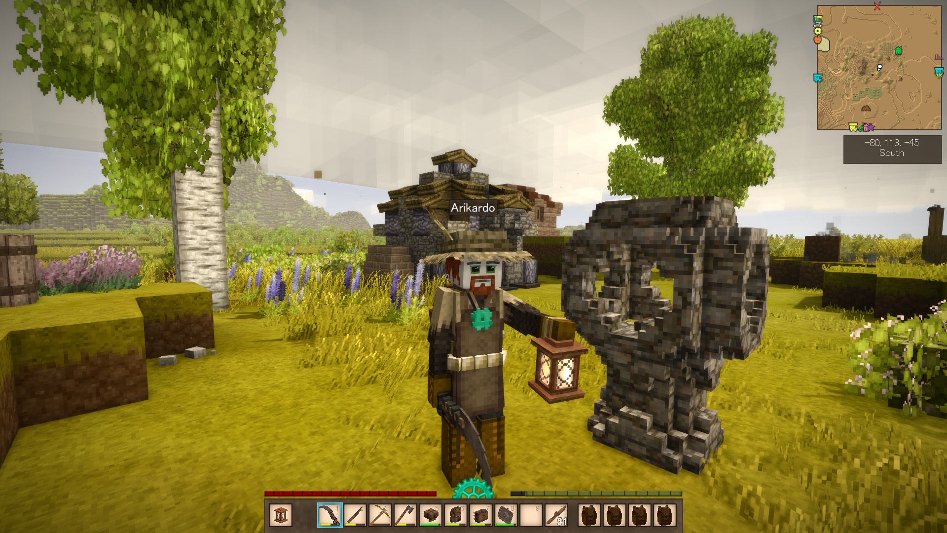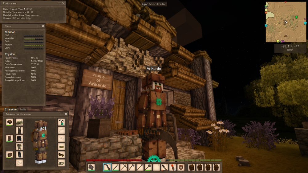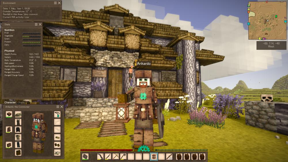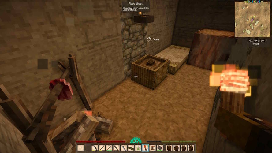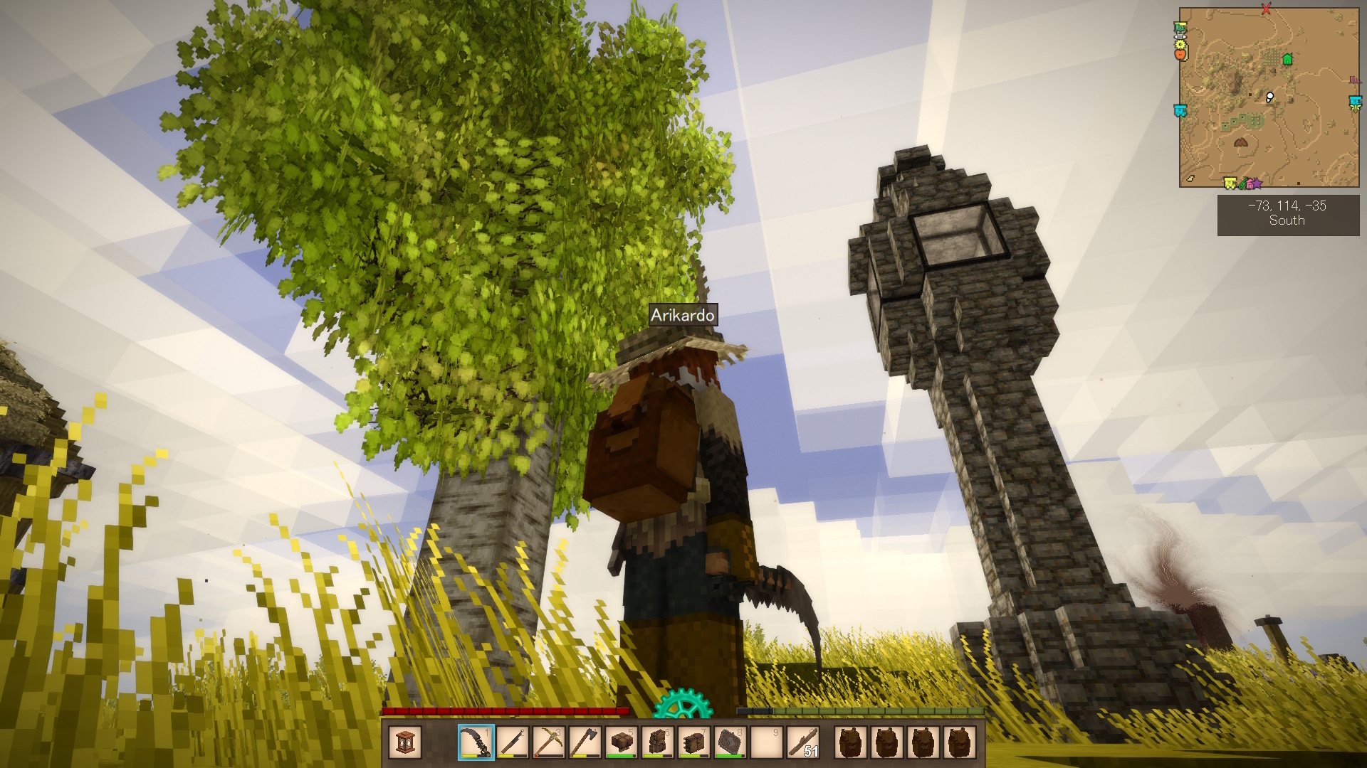 Hello to whom ever finds this. It has been a while since I came here. Not long for you perhaps but it as been a year for me in this world. And that is exactly why im writing to you today. Because today marks the day where I have survived and flourished in this world for a full year and I wanted to show you how far I have come in my adventure. This small hut is where it started. Built from the cobbled remains of my first ruins it was as much as a home as I could have managed at the time. It was just a 3x3x3 with an open side, not even a door, just enough space for a makeshift bed to keep me, my firepit and meager collection of personal items out of the rain. And it rained a lot. Aside from the rain on nights that were particularly bad with the creatures of the dark I had to board my entrance with dirt just to keep safe. Thankfully I have gotten past those days and have transformed the small hut into what is now my smithy where I forge my tools. I've been on copper for most of the year until finding tin during a random cave dive. Not much but enough to make something that lasts and even an extra pick to pursuade a local to tell me about a location of great significance. What that location holds however I have yet to discover. For most of my time I have lived off the land in my small and increasingly cramped box. Unbothered by the weather and unthinking of the food I would need. Meat cooked and eaten quickly with berries around every corner. It was already autumn and I have spent my time exploring rather than building for the future. But I realized I may have been reckless in this way of life. Winter was approaching fast and berries would not help me last through the winter, so not only would I have to put more meat on the table, I would also need a proper place to store it and for me to brave the cold if I wanted to make it through this. So mere days before the first snow fell I started the construcition on what should become my proper home in this place. At first just a ground floor.and a stairway into the ground to be my cellar. I had not begun working properly on a forge yet either so to keep the cold out for now I had to settle with a door I had bought from a Trader in the forest. Food was the greatest concern. All the meat I managed to hunt went into filling and sealing crocks now and at first the door was dedicated for the cellar to make sure it lasts while the front door was crudely put together from sticks. A measly bit of grain I found while exploring and a couple logs with sealed crocks on them where all had to show for when winter came. I feared for my survival and my stomach regularly growled at me. I thought I had made a mistake that would cost me dealy with my supplies seeming to get used up slightly faster than I could manage to restock them. And at the mere cost of being outside in the cold I thought I would not have enough to just stay indoors all winter. Something had to be done. It began with the quick remodelling of the freshly abandoned small home. I needed a forge to properly work on my home so it can keep me alive. Tools were made to facilitate just that. Shelves to better store food. And doors to properly keep out the cold. And the time that was not spent building was spent on gathering what little sustinance can be found in the cold. Proper hunting is tough when most of the large animals are nowhere to be seen and foraging for the last mushrooms in the snow was a race against the clock. But the future was looking brighter than I could have anticipated. Through good effort and a great helping of luck I got the survival aspect covered for now and food was at a stable supply. Stable enough that I found myself with time on my hands that I didn't think I could have in the winter. So I got to work doing more. It started with leather work. A few barrels outside for the start. Eventually with the proper completion of the house after completing the roof it moved inside into my new attic.Which like my forge has become my new workshop. The pelts I had until that point served well to keep me warm but something to guard myself against the hazards of the world would be made here along with more of the utensils a proper home would need like more pots, plates and anything you could imagine bulding with clay. And it was in this workshop that I made a new friend. You might call me a crazy person to consider the company of a carved rock to be comforting but it is a very good rock. Chiseld from a block of Bauxite Fauxite this friend was made. Though a faux fox it may be and even if its stoftness pales in comparison to the wild animals outside this one was special to me. And so this Rocky Fauxite Fox shall be my companion for the times to come. Home... This wasn't just a house anymore. Day by day it became not just just housing to shield me from the elements. It became something to call home. It was in the harshest of seasons but by the end of it I was not just surviving. I was beginning to thrive! On The winter was ending and my dedication was rewarded with another stroke of luck. In my exploration of a massive cave close to home and nearly getting lost and almost perishing in it twice I found an enormous and rich vein of magnetite iron. Going from struggling to make copper and having only the most valuable of tools made from the tinned bronze while most of my tools were still fashioned from stone and obsidian, I had immediately made the move to a full set of iron tools. And not only do I still have ore to spare after my long nights of forging, I still have yet to deplete the vein I have discovered. And there we are. The last month before the year has finished was my most productive so far. So lets take a look at what the place looks like now: . I have managed to gather a couple chickens. At first just one but by now they total three. They are still nervous around me but shall assist me in my endeavours of not starving so I will take care of them as best as I can. I have also begun fa