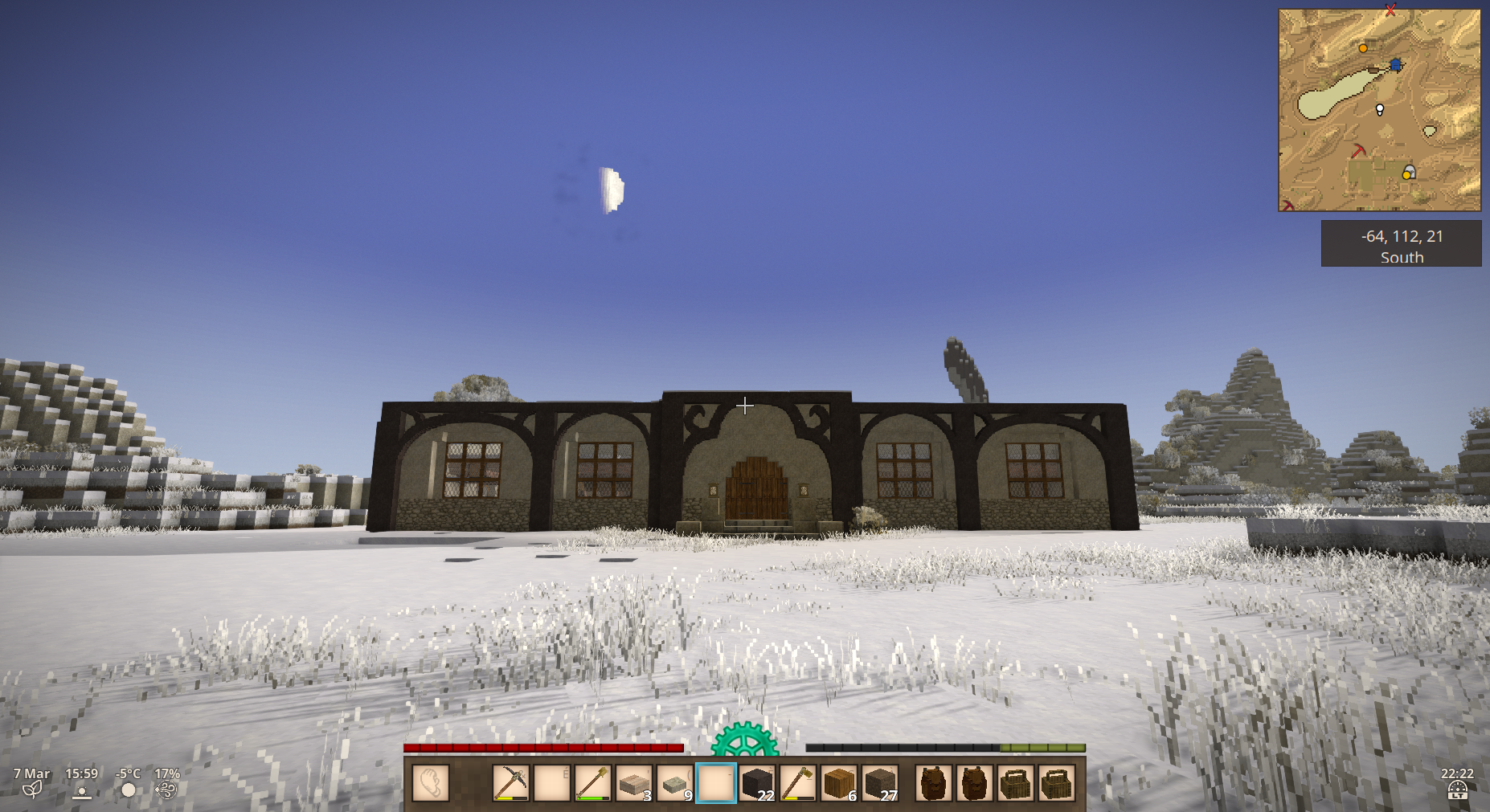 I finally completed the whole exterior in creative, keeping the central survival building as it is and expanding it. I might correct a few things as time goes on but the general idea is here. The interior is as empty as requested by the minecraft tradition of not doing it, even if it would be a cool survival let's play to start with this build as a base and arrange its interior. Also, I don't know if something like this exist in the Vintage Story community, but I might be interested in long standing (at least several months, more like a year) building focused servers where a team decide to take on a big project and everyone slowing progress it.