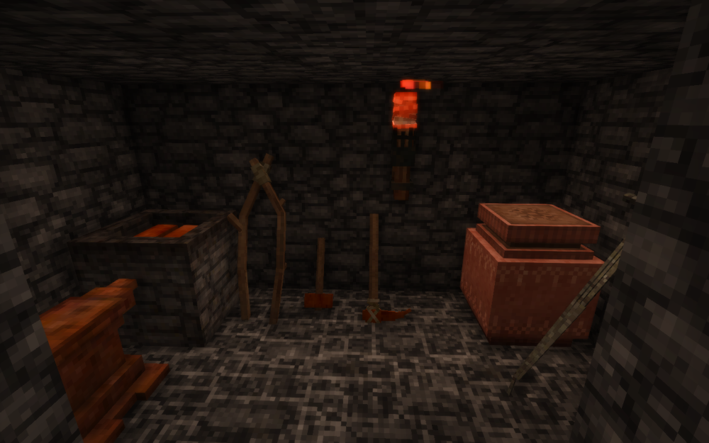 Thank you. I didn't know we had a builds thread, I'm somewhat new to the forums. As for the large book, that's a prop item I found in a ruin and fixed up with glue to pick up. A lot of the things I have on display are like that. If you're unfamiliar with glue just Cook resin and charcoal in a pot (it will ruin the pot for cooking). It takes 3 units of glue to fully fix something up. And glue hardens after a time so you have to be quick about it. But there are a lot of things you can grab form those ruins that make for good decorations.
