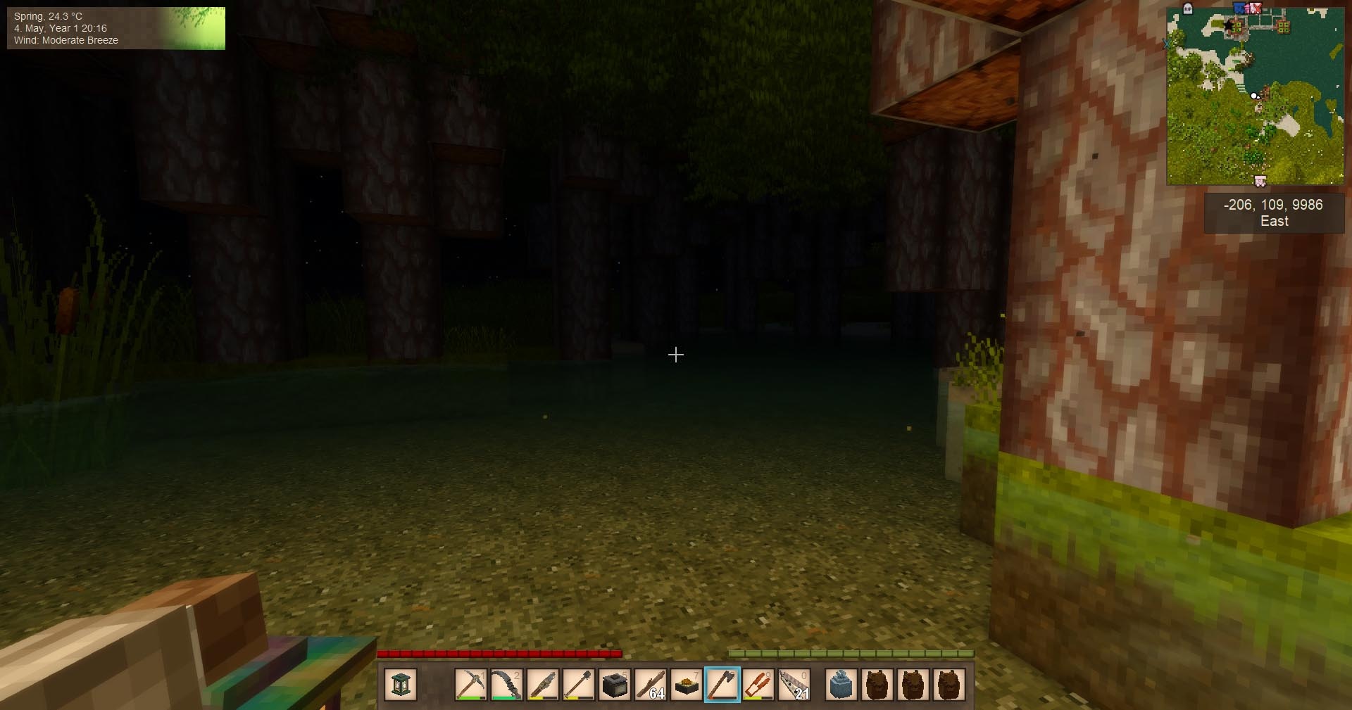 My world gen has halved polar-equator distance and so my redwood/bald cypress band is narrow, which is why I struggled so much.