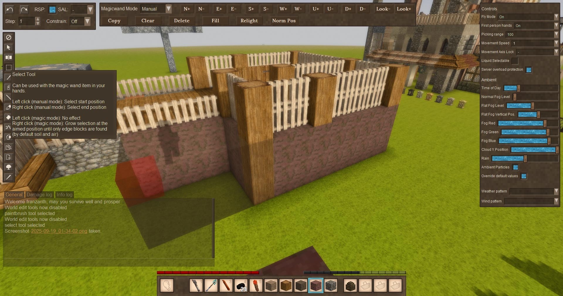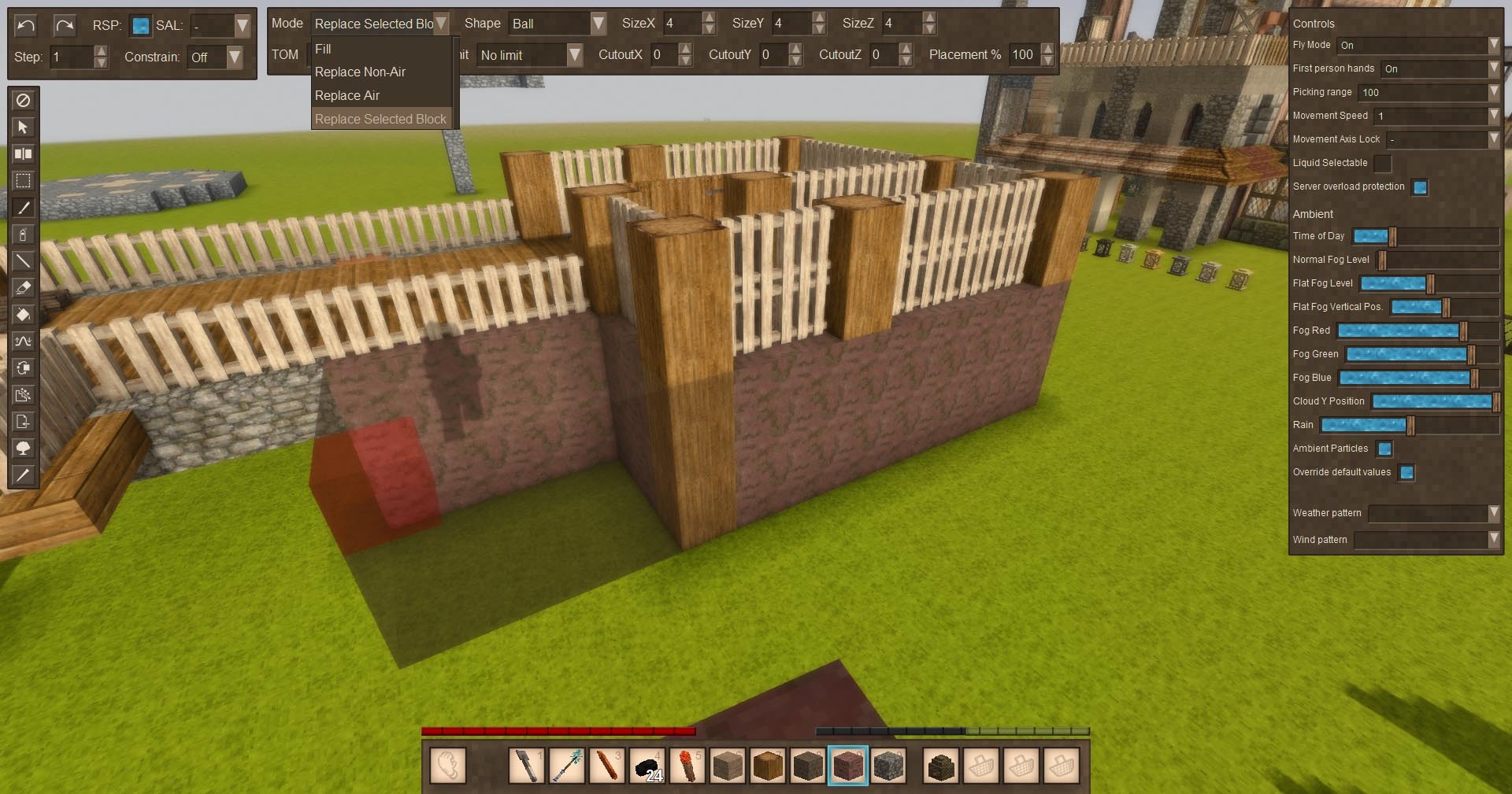 3. Close WorldEdit menu, right click the target block you want replaced. The active block in your hand will now replace the target block.