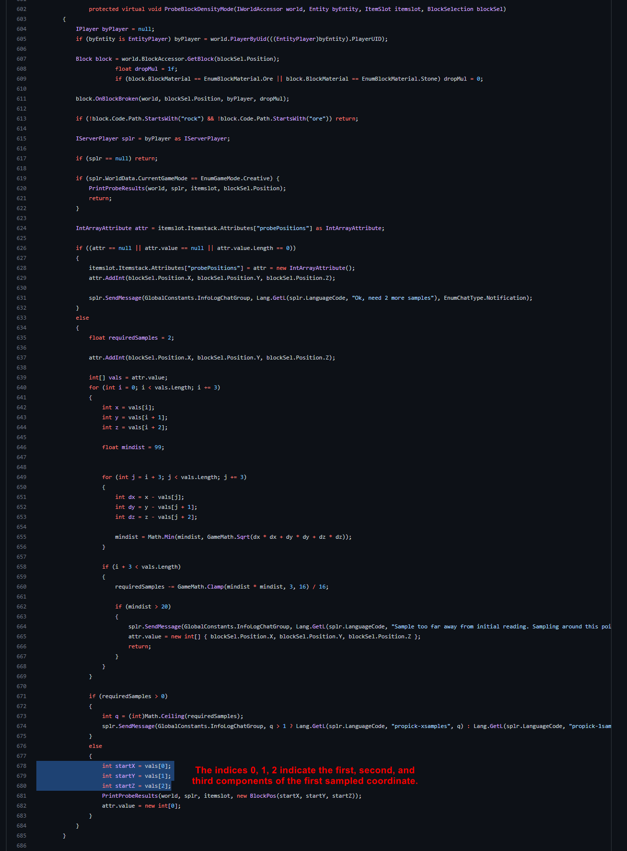 21. Before I start i'll just say this isn't my usual whining about not being able to find ore haha What I mean by "Fake" is this: The prospecting pick is claimed to work by triangulation. Take a reading in 3 points and get an idea of the ore generation within the area you have defined. However, when in creative mode it is only required you break a single rock to get a reading. This means 1 of 3 things is possible A: The propick is giving a reading for a triangular area of ores in survival mode, but only a single block in creative B: The propick is always giving a reading of a single block, the last one your break. The triangulation is just for show to make it a challenge C The propick is just giving you the reading for the whole chunk. The triangulation is arbitrary Thoughts?
