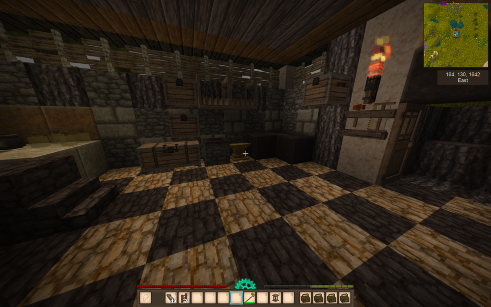 its amazing what a lil' bit of glass will do ... homestead improvements little by little. today focused on forging bronze tools, and spears, getting apiary finished ( well full populated, ceramic and wood beehives going in as I get to it. ) Captured chickens, penned them up. Accidentally got pigs, and fenced around them not far from house, but far enough it'll be a pain migrating them to the homestead.) Got my cellar area started too. -