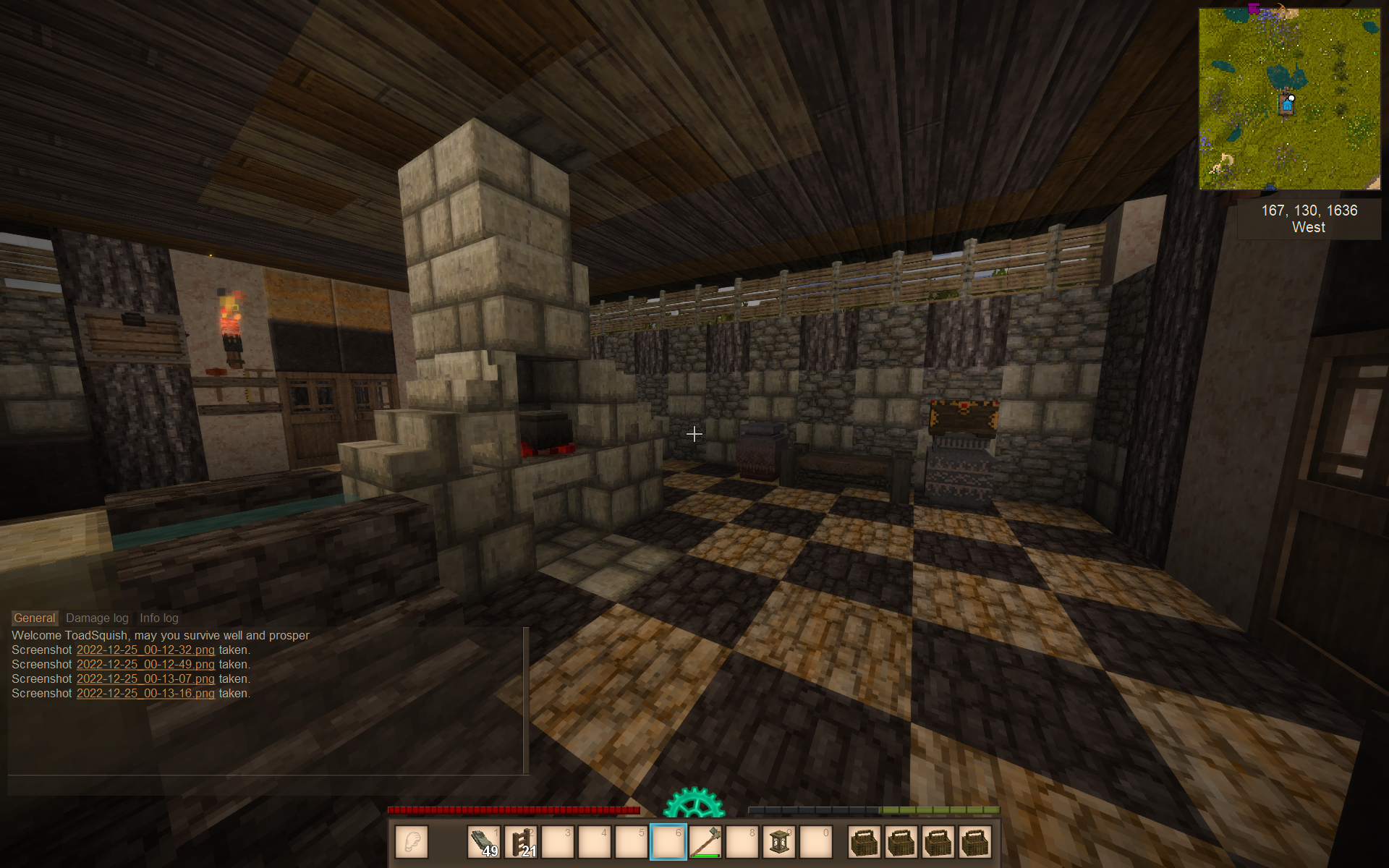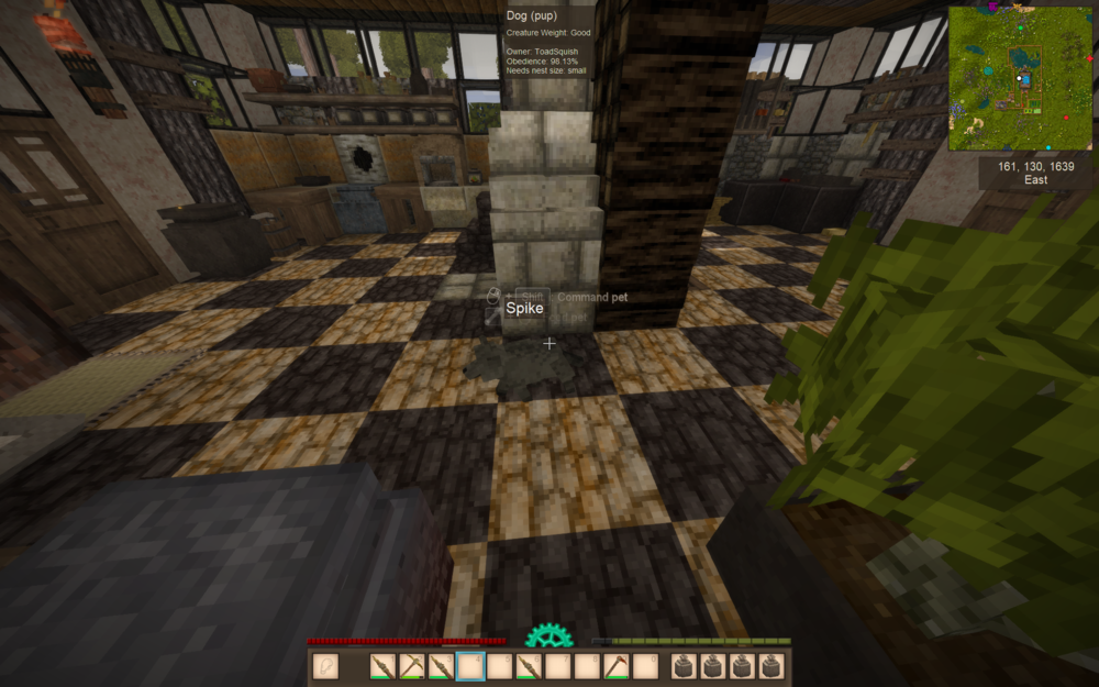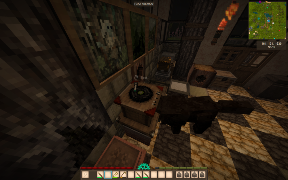there's been lot of first on this playthrough for me. My first wolf pup tamed, the dog grew up, turned out to be female. Renamed her to Ebony. I found the echo chamber. A first ever for me , I hadn't ever even seen one at a trader before. I discovered two veins of marble on this play through. The pink/white marble seen as my columns and support of the earth-sheltered house, but also found green marble last night while digging for tin. Edit- forgot to mention, spent about an in game week, fencing and corralling off the distantly trapped Pigs closer to the home. I didn't screen shot it's end result, as it's nothing fancy just a double pen area, one designed for me to run new gen piglets into to separate from original pigs to cull later on. but took up the bulk of my play time for most the real life day. -