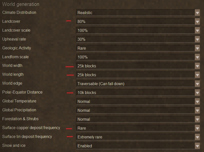 after 300 hours or so playing vintage from 1.15 to 1.18, with 4 true commitment game save each version i think a lot default setting for the game in not friendly for single player setting where grind is too much, resourse too scarce like metal and processing leather (lime, chalk etc) i will share my "preference" setting to enjoy the game for single player added bunch of mods but not really game changing Yes i can say homo sapiens is unique, probably after you reach Pre Steel Age there not a lot to do, since not much challenge/content to explore abundant food (after you set good well base, bee farm, foods in cellar, green house, big farm, but the process going there is a lot of challenge, somehow for me personal drifter just nuance, i dont jugde how people play since people just exploit the game mechanism to avoid them, they spawn endlessly, no soul, just too annoy you putting rock/pebble you mines on cave floor, blocking dead end pitch darkest, so drifter cant enter, using slabs etc yes they have good loot drop, in the end they add challenge, but after sometimes they just hindrance of your valuable times another note is very challenged finding Lime or Chalk for progress leather, still struggling finding good mods or setting, its my 1st mandatory settting up base good landscape flat big open area with a lot landmark for easy navigation, low rain frequency (i hate raining all over everyday), near good pine forest for resin and good river, lake, sea for long range boat travel nice view outside your base here my setting Mode : Homo Sapiens not really into supernatural stuff, but you will miss the lore and the trader no drifter, no bells, rift etc but i like the idea like spider still in the cave, maybe in the future i hope more animal and more "realistic challenge" outside bear and wolf like disease, more challenging enviroment or disaster, as long its not supernatural the best stuff is NO MAPS, so no easy instance Propick to easily advance to next tier metal you need put landmark, signpost, road so you not lost Tool Durability : 200% well after few times you will get bored how fragile tools get destroyed after few uses, 2x is my ideal since its not too grindy, and realistically metal tools should more durable Tool Mining Speed : 150% after doing this a lot, you will get bored staring at rocks/stones, 1,5x speed or 2x speed i think its good way for single player, at least you not wasting a lot time in game and your time more valuable than doing spelunking cave in virtual world Land Cover : 80% at least with 20% water or sea, you can travel more with boat, somehow you can find underwater mining spot, since in homo sapiens dont include map World Width : 25k blocks World Legth : 25k blocks Polar Equator Distance : 10k blocks yes i know its small for some people, but in homo sapiens you cant really traverse very far from base, unless you really have good sense of direction, there is no MAPS everything must be planned, where you go, what you need, or you will lose ur way or stuck waiting nighttime in some random places that why polar equator is short, you can enjoy more different biome, get some other type resource some people double this setting 50k X 50k blocks , Polar 25k for more challenge but since dead penalty is harsh enough, if you dead in random places there small chance you will find your belonging i dont know why default setting is so massive (1 million blocks), yes for multiplayer maybe, but most of player i think play single player or with a wife/gf/friend so big map make it so difficult to finding another biome with different temperature and resource in my experience going from temperate area to ice snowy biome, hot desert or jungle rainforest took me 2-3 days in game, because you cant just randomly walk straight without maps Surface Copper Deposit Frequency : Rare Surface Tin Deposit Frequency :: Extremely Rare i crank up one level for this setting, because i dont want waste a lot time looking and searching for early progress metal i know you can just randomly going inside cave ( yes no drifter, etc) but its not enjoyable spent time on single player game too balance real challenge Versus arbitarry time waster challenge the rest of setting is default but you can change to your preference ------------------------------------------------------------------------------------------------- Mods 1.18.5 ------------------------------------------------------------------------------------------------- There few simple mods im using for 1.18.5 not really a game changing, but enhance your experience for single player adventure in few categories Essential Bed Respawnner - https://mods.vintagestory.at/bedrespawnner this mods is amazing, just follow the comment edit the mods urself the edit itself remove hay bed from respawning point, so before you can make Wooden Bed you must be careful and dont die and for travelling skipping night outside you can just bring haybed, but if some wolf or bear killing you, you will spawn back at your wooden bed at base Better Firepit - https://mods.vintagestory.at/betterfirepit well its should be in game feature, not resetting temperature every time item cooked, less grinding for fuel, more time for fun Carry On - https://mods.vintagestory.at/carryon Everyone play vintage story using this mods, really a game changing how you bring resource, a reed basket or a chest really adds a lot to your inventory slot Simple HUD Clock - https://mods.vintagestory.at/show/mod/282 A Quality of Life UI mods, must have Step Up - https://mods.vintagestory.at/stepup if you count how many space bar you press on one hour vintage story, you will need this mods less spacebar press just hold W and run Need For Less Grind Buzzwords - https://mods.vintagestory.at/buzzwords this mods make finding bee more friendly, no more need for audiophile sensitive ear to finding your first beehive on some random trees and random forest because you need progress further to make lamp, you need candle, too 