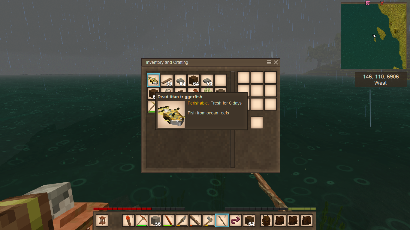 There are various ways that this could be done. I will leave it to the devs to determine the best way to implement such a feature, but I feel that being able to transport fish without killing them is extremely important. Currently, the only way to do this would be to make an extremely elaborate water pathway and attempt to herd the fish through that pathway, which simply isn't feasible. I was hoping that the ability to catch fish with the fishing pole in 1.22 would solve this issue, but the fish immediately die upon being caught, i.e., a dead fish is added to the player's inventory instead of a live one. I have the materials needed to make an aquarium capable of housing all of the beautiful and interesting fish I catch, but no way to put fish in that aquarium without the use of creative mode.