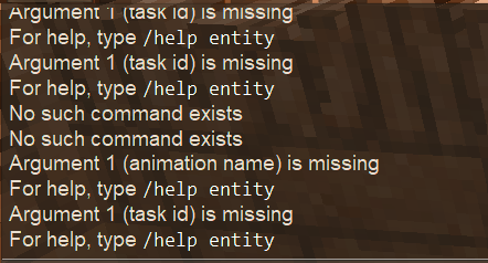 I'm doing some very tedious mod config work, and what I really need is the ability to spawn in a bunch of animals and freeze them in place. The wiki leads me to believe that I should be able to execute two quick commands to achieve this - /entity cmd stoptask , and /entity cmd stopanim.