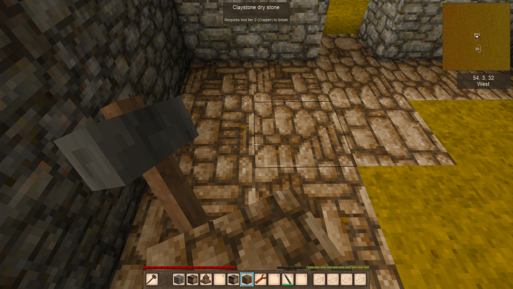 7. I'm currently playing around with different stone types, but am having quite an issue with dry stone. I'm trying to get the entire floor to have the same orientation, but am unable to change the face of the blocks no matter what I try. rotating with the wrench and chisel tool don't change which face is up like they do with other blocks, and i've placed them from every direction i can manage without luck. i've also tried removing the walls in the corner in case they were somehow throwing off the orientation, to no avail.