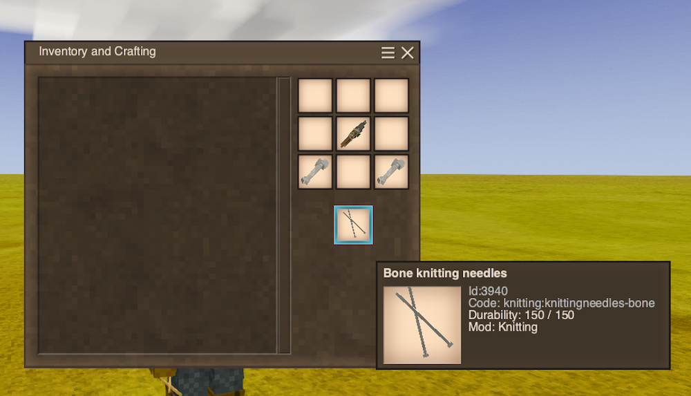 I just published my first mod. It replaces crafting grid cloth recipes with a simple immersive knitting process. It's intended to add a more realistic early game / stone age phase to weaving tech mods like Immersive Fibercraft. Info and releases: https://mods.vintagestory.at/knitting