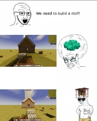 1. Made this because I spent like an hour chiseling a roof for practice only to realize it would be more time and cost efficient to just use chiseled stairs. (Source: find the "We need to spin a bullet exactly 90 degrees" on google)