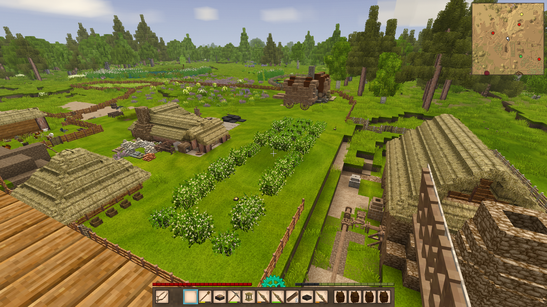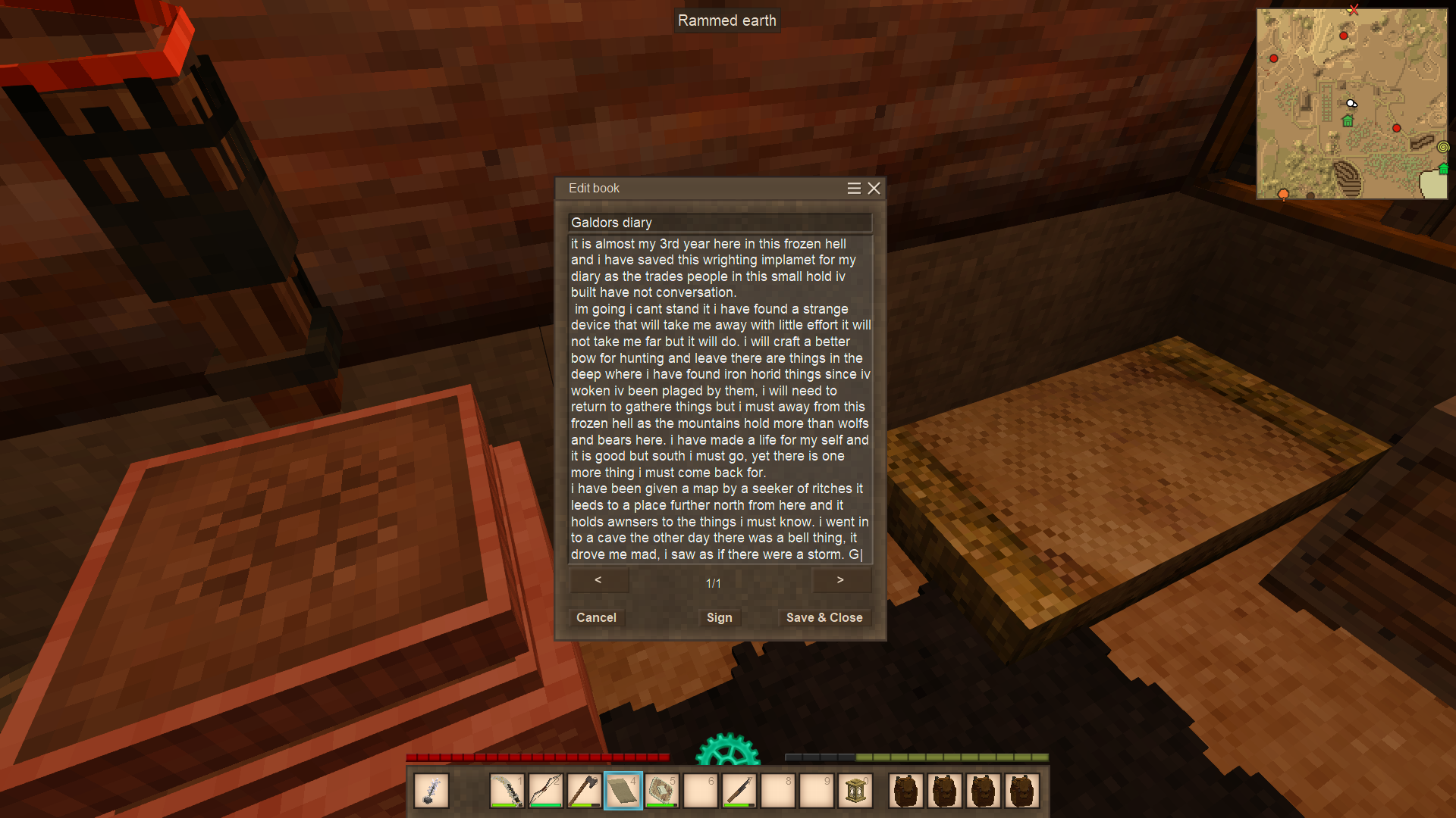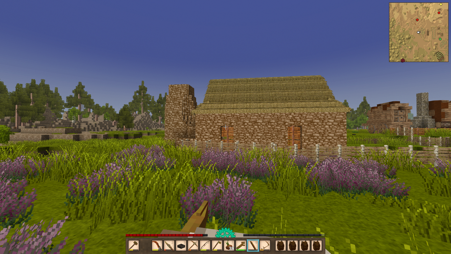 there have also been very funny glitches and bugs such as drifters with three arms and arrows doing damage as mobs walk over them (very handy in desperate situations but it did kill my rooster)this aside iv rebuilt the forge made some iron plate Armor found lore in dungeons and made it to a red wood forest witch was really cool id like to build a boat but there are not big lakes that need one yet. i have found the library but will have to have another go at it as i almost died but i did make a lot of pies witch i think are the nicest thing in this game atm, one thing i would like to make is a better farm somewhere where there is a longer growing session so i can grow cold weather crops up in anfiltham (my current home) and have a warm weather farm with hotter surroundings.