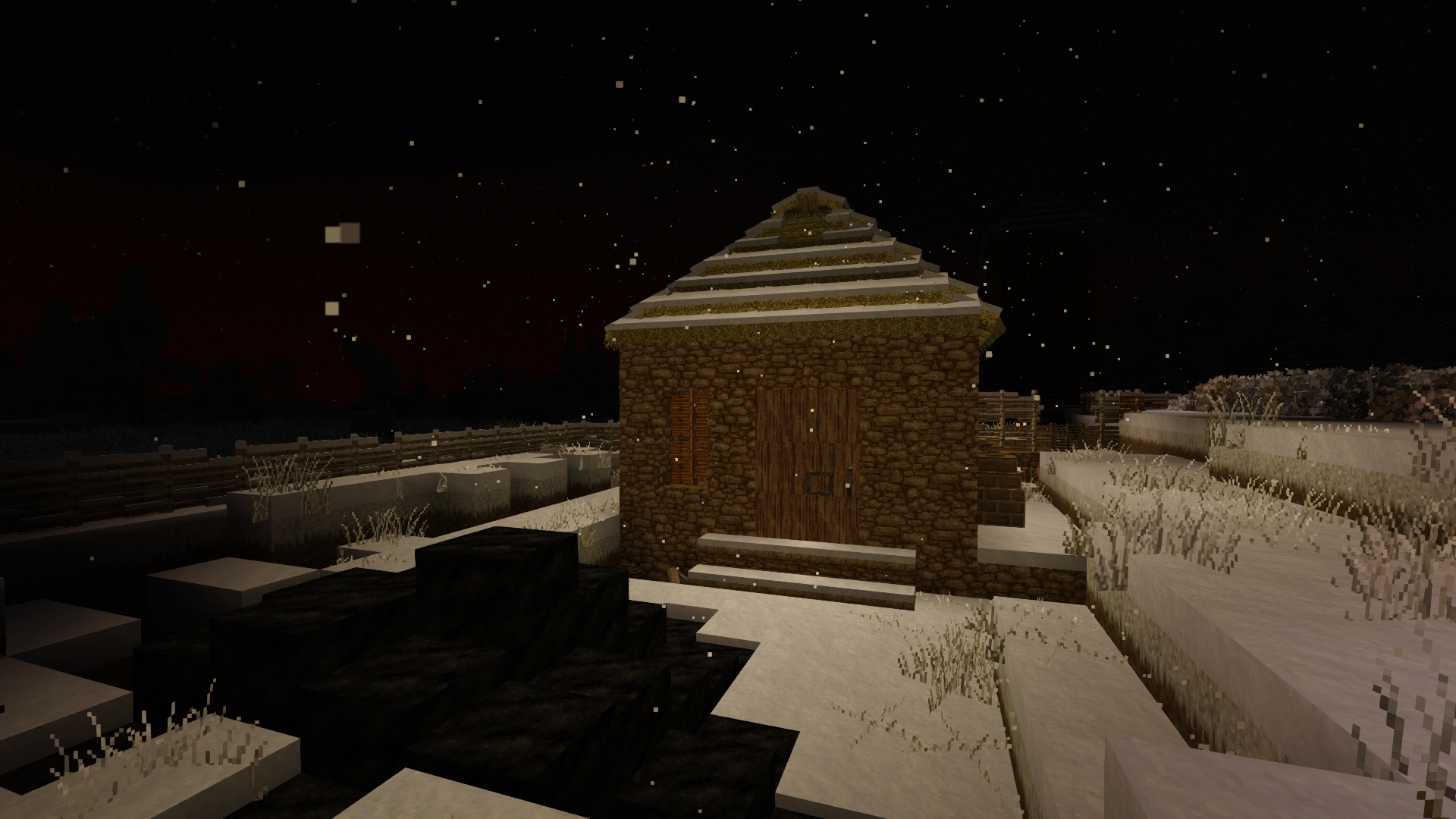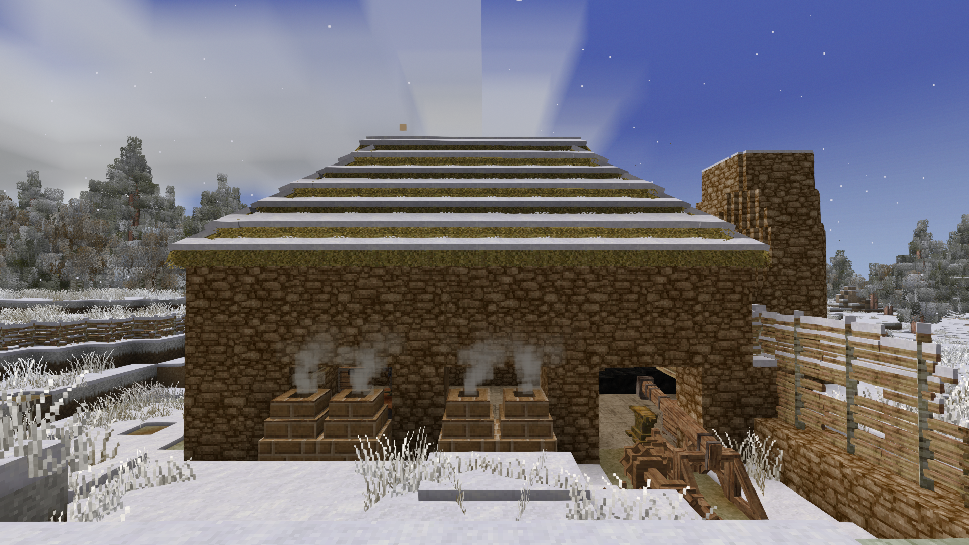 so started the winter of my discontent... and the summer.. so the year of my discontent really, i had to quickly restock all the things i had lost. over the Christmas Holliday i would sneak away to make plates and mine ore and find translocators to more ore est est est. once i had done that i started on a new house with an upstairs (tho i keep having mobs spawn inside it how do i solve that?) with a better house with a kitchen and more space for my stuff i set out for the lazarette after a major flax shortage (this shorted was solved with two new fields made by infilling ponds and cutting channels in a meadow for water)