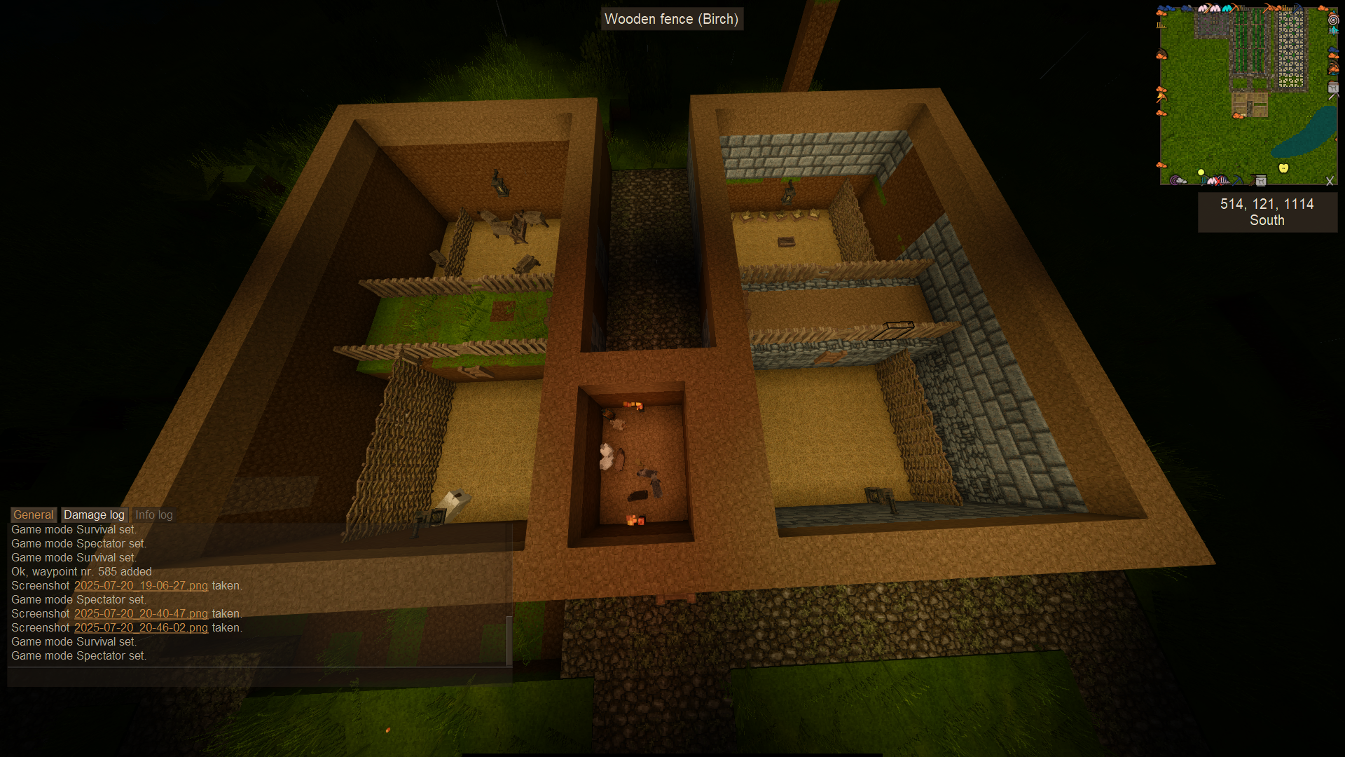 The first picture here is when I found where I decided that my base was going to go. It's a bit of a run from the spawn, but it's not too bad. Okay, it is pretty bad and I ended up going splat on the runback to just my base a number of times before I got my first gear. Eventually I ended up making up an entire series of roads to help out with that. I wasn't just going to build though, not yet. Have to do a few things to prepare for the winter, right? There was so many ruins in my seed. So I was constantly being tempted to dig them out, take the blocks home, and stuff them in containers. Then sift everything. I also got some nice loot from the containers in them. Course, when one thing works, this game likes to make sure that nothing else will. So while I had all those ruins, and all those vessels ... I had no clay. My first clay took me in game months. I had enough copper before I had enough clay. Then I found my first clay. Blue. And I fell in love. Once I brought it back, made my first containers in pit kilns on the shore, and had my first storage ... yes, that's when I started to find clay. Piles and piles of red clay. Back then, it didn't matter as much. So, my first structure, just this little cabin out on the water. Logs and dirt. I thought larch was horrible, and I didn't mind using it, and losing it, and using it up. Learned my lesson latter once I discovered how GOOD the stripped larch log texture is. Oh well. Getting more caused me to explore latter, and I enjoyed the trips. I might enjoy exploring more then I enjoy building. Not sure though. It's a close question. Nearly winter before I got that first charcoal started. Wanted enough of it that I wouldn't have to worry about running out. Took down most of the nearby trees to do it. Went through multiple axes. Yes, I've learned my lesson. Early game, just go fast. Though, I still managed to enjoy myself even with the slow start. Step two in the build. One central max size room, and then slabs around it of the same size. Water logged slabs and that single block in the center was the easiest way to hydrate the three fields. I moved the pit kilns into a space in the back, and after a few tries I was able to make sure that it wouldn't catch fire. Spent the entire summer mining copper and looking for enough tin to get things started on the next step. I should mention that once things froze, every bear in the world packed up and walked through where I put my living room, like it was a highway. So I'm rather glad I put walls up on the outside parts. Changed from birch to quad birch at this point, I'd not noticed it existed before, and once I saw it, I knew I wanted it. Inside view. With just one sealed room the storage was just piling up. So I couldn't make it look good, and I kept losing things. I also was both oddly proud, and oddly frustrated by the thatch roof. Still, I think I was really getting a feel for what I liked, and what I didn't like, at least with the materials that I had in the region. Fanned shale for the basement. Slightly fancier then other blocks, but also a bit more spendy in resources. I needed a basement at this time, not just because my storage situation was spilling onto the floor and getting out of hand, but because I'd eaten through last year's supplies, and I'd have to grow things this next year. I could have spent the time living off the berry bushes I collected, I guess, but it was time to do something more. So for me, that meant going deeper. By the end of winter, I had 6 sealed rooms, AND hallways between them. I stripped the roof off, but sealed it with a floor, and my hunt for slate started in the spring. It took most of the year to find and bring back enough for even one roof. I'd also discovered just how good the stripped larch looks with the sandstone. And in finding, and ripping down, three entire forests of the stuff to make this build, I'd found a mountain tall enough to have glacial ice. So those farm patches are full greenhouses. I still say glacial ice feels a little bit like a bragging move. Okay, I don't THINK it was a game year between these two pictures, I must have gone hunting, and THEN did the rebuild, and I'd managed it just before winter. And of course, I got the roof on by spring. That feels right. I've got the frames of the second floor of two more rooms in place in walnut, but I'd not actually found and destroyed the third larch forest yet. And I'd run out of saplings again. So, each time I ran out of charcoal, I tore down the structure, and rebuilt it larger, saying that the NEXT batch, the NEXT batch would be the last one I'd ever make. This one was pretty much max size, with a little rounding of the corners to help hide it in the structure. You can't JUST have a dirt building that large with the rest of your structures and feel like you've got something good. Add in some grass roof, some wattle 'n daube, and a bit of creative storytelling to yourself, and now you've got something that isn't too horrific to leave in place. Over the course of the last two years, any time I could dig a hole and capture an animal, or wall it up against a cliff, or otherwise get one stuck, I'd mark it, and move on. This felt like the right time to try domestication. Course, with bears that seemed to be able to hit through walls, I took every precaution I could. Of course the critters still managed to clip out and I lost a few before I'd done enough building to secure them. I had to build a few thousand blocks of road for the goat to chase me home without one of us getting lost again and again. Worth it? I'm honestly not sure. For just the goat, no. For the merchants that were out that way, and the huge deposits of metal. Yes. One of those attempts I fell down a hole and just barely lived. Found a massive vein of copper, and andesite. I knew I'd have to use it in a building, so I used it in the barn. Due to the glitches, I tried to contain the animals in pens below ground level. I'd hoped that the for