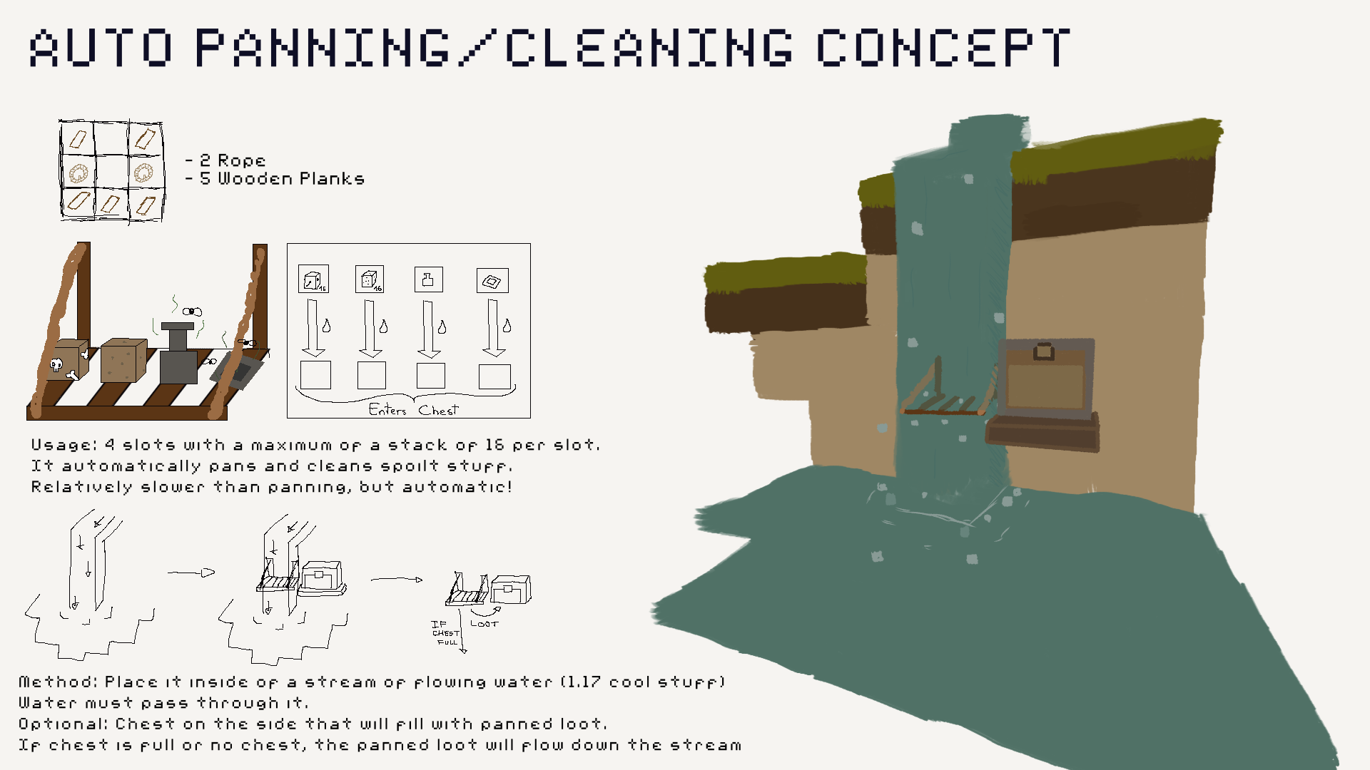 Pretty much an idea on how to fix the awkward cleaning method of spoilt food we have right now, as well as providing an autopanning device which could be fun to leave running after returning to your base with bony soil and stuff!