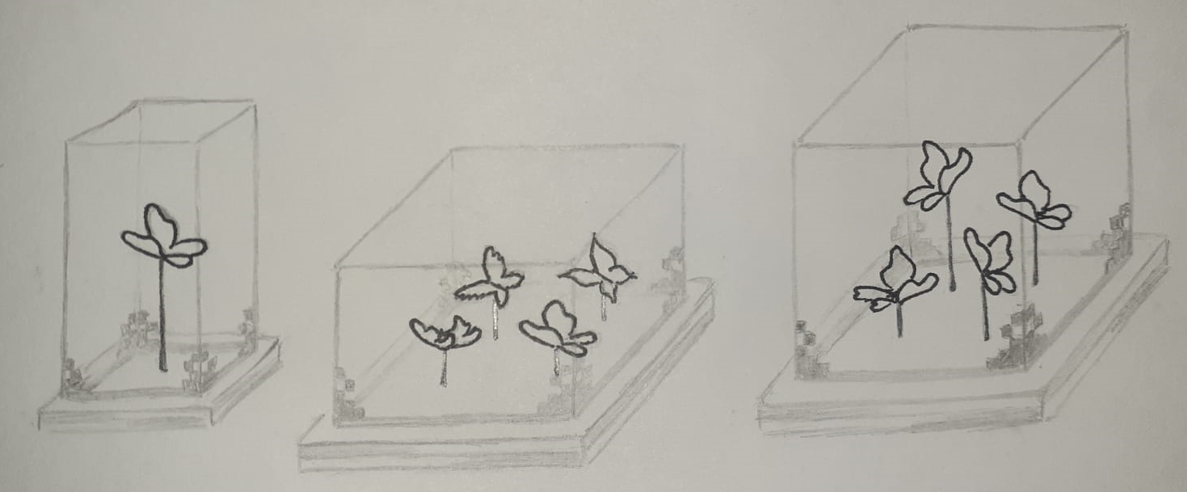 Catching butterflies is not a feature of the game I had paid attention to particularly... until i noticed it can actually be fun~ I know this because i died falling down a cave while trying to catch one of them critters... TWICE. I even made an extra room in my house to show off my collection of dead bugs, only to notice that the preserved insects are not that visible unless the display cases are close to the floor or you get super close to them. 2.5 blocks away and look at the flat stuff~ This feature is already there, so why not make it in a way that it's easier to see the butterflies from across the room? (Standard) Display cases are very useful when making an exhibition of rare items, ores and crystals. Tall Display cases on the other hand, are stellar when showing off big crystals and the stolen goods from the resonance archives . But when displaying butterflies, they lie flat at the bottom of the case. Since there are i don't even know how many butterflies out there in the game, i think that this is a problem that should be addressed. Single Display Case: Made to contain single smaller items to show how important they are, such as smaller crystal variants, flowers and butterflies. Vertical Display Case: It looks just like a painting, only it has a bit of a thicker frame and a thin layer of glass. It can hold up to 4 specimens. This might be the ideal solution. Some items used in the recipe could be Beeswax, Parchment, Linen, Glass panes and Wooden Planks. Another way to solve this problem would be rendering the butterflies on a stick, so that they lie a bit higher in the case. This would be a similar example of what it woild look like: This belongs to the MC Mod and Resource pack, Cocricot. Translated to VS, then it would look kinda like this: It's a drawing of mine, I know~ But don't you dare to laugh (¬_¬) So what do you think? Can any of these ideas solve the visibility on the displayed collection of butterflies?