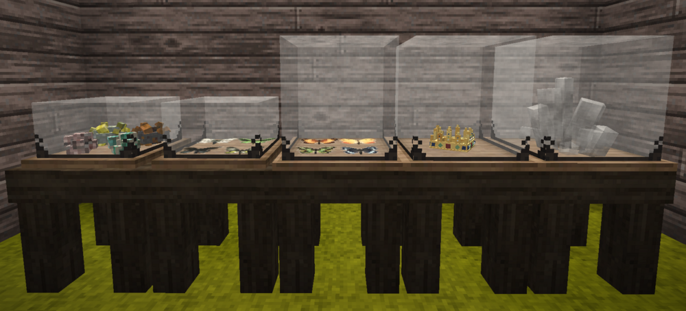 I have this one .doc where i've been dumping every single idea that just makes sense to me for a full year at this point. The document grew so long, that it's getting harder to find ideas that aren´t interconnected to each other already, thus making them impossible to separate into simple independent features. This is why i decided i'd finally start isolating aspects of the game and posting some of the more elaborated ones... but i hit a wall since "connected textures and blocks" are kind of a necessity and i have no clue about making mods for VS. Never tried and unfortunately I have not enough time for now. I thought that adding each segment would end up being heavier on the memory used, so i removed most of those features on this post just to show the most simple solution. The problem is that there is only so much you can chisel before the surface of the "block" isn't solid anymore, and just like that, many blocks imagined to be the display base were taken out of the post. Even though i wanted the small case because the current cases are too big, i took it out as well because i thought no one would even care about this since you are dedicating a full block to show one item... you know. But displaying stuff goes beyond to the unique weapons the player encounters to the bountiful ore chunks and objects that can be a pain to find. Dude, you even included the tilted items, and i took that out too because i thought it would complicate things!! Your mod is a materialization of a part of the document that addresses displaying items and exhibitions. You've covered stuff that i was planning to post as suggestions later in the week!! You rock!! Count me in as a tester as soon as the mod comes out~ -
