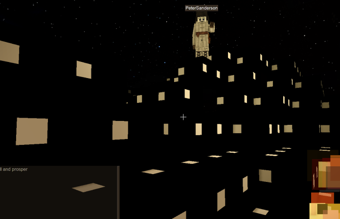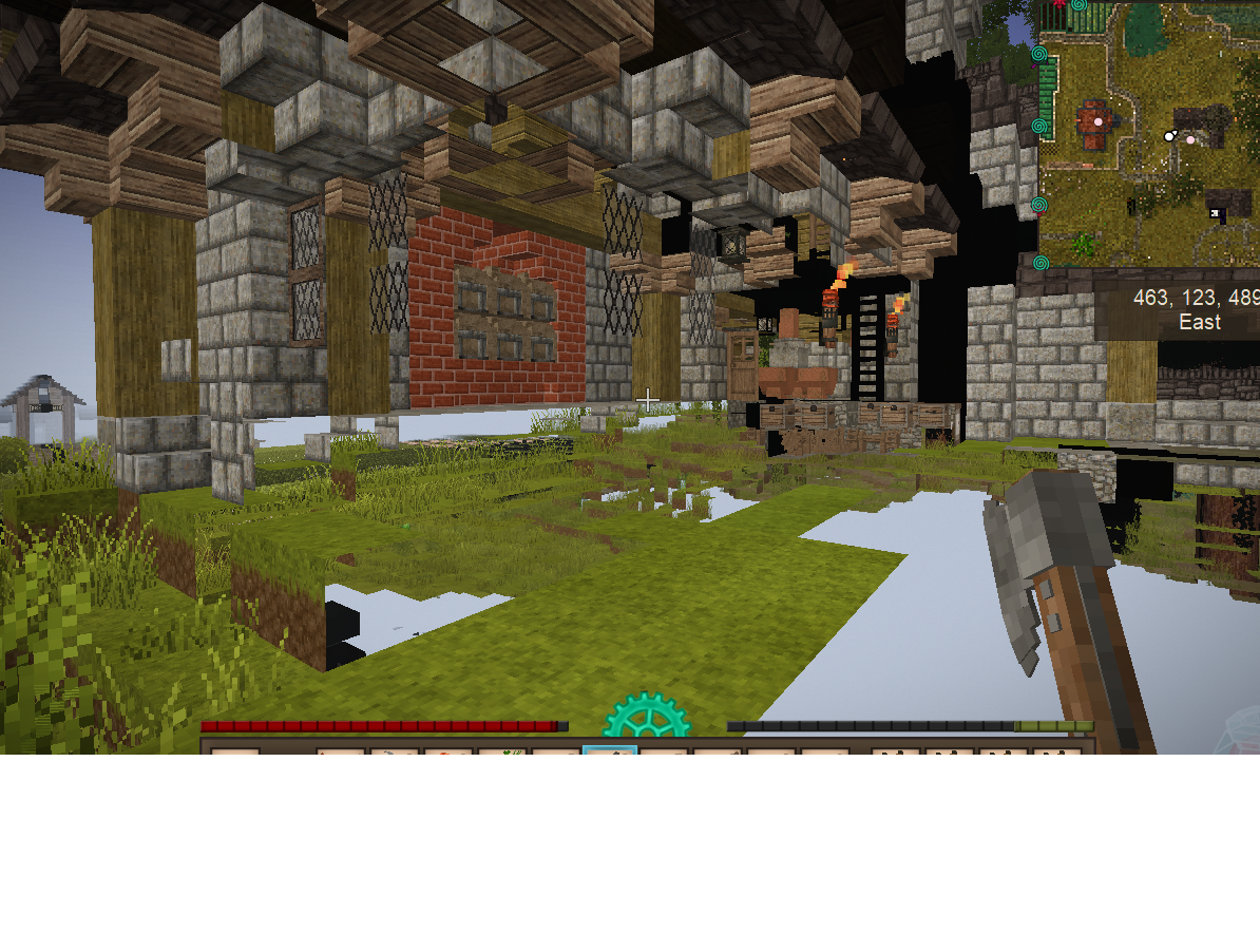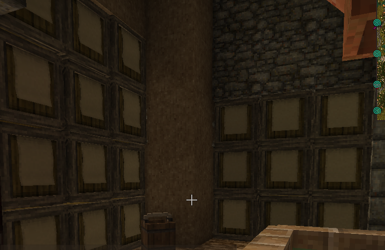 Now when I try to play I get periodic hard freezes for about 1-5 seconds usually, often occurring while traveling or a few seconds after teleporting. Those freezes are almost always followed by a complete loss of world rendering that only leaves entities visible. Alt + F2 reloads most of the world but sometimes "holes" of varying sizes and shapes persist, the picture with the building shows this effect, that building is complete with walls and floor but they're invisible. Often placing blocks or interacting (such as opening a chest) will make some of it load in, but the next action just as often makes it go away again.