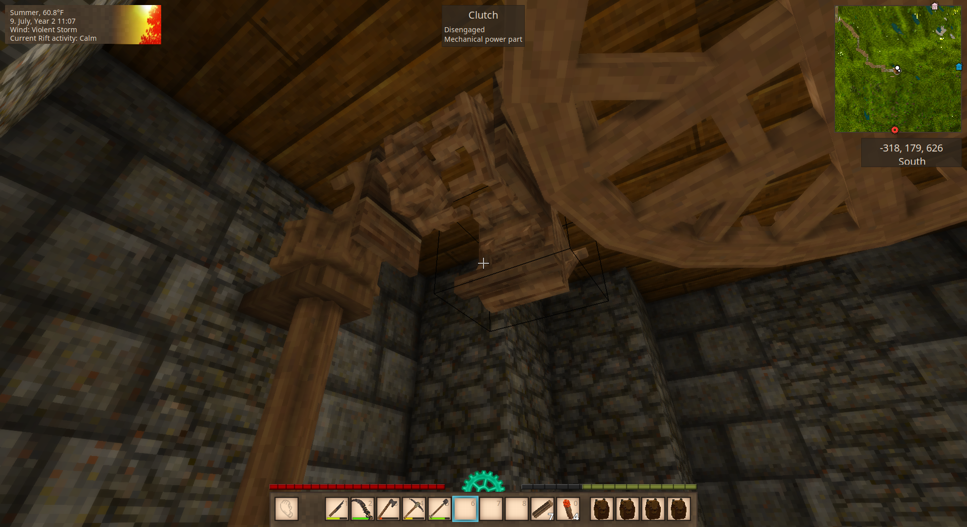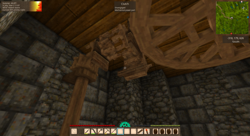 Technically there should be no real issue adding rivers to the base game in a better way than simply tunneling through the landscape. They already use a heatmap system for ore, no reason one can't be added for drainage which would interface with world height. Other terrain generation systems have already done this, it's just a matter of understanding and implementing it. The biggest hurdle IMO would be creating water sources that make sense. The default land mass percent might cause issues and would likely have to change, and it would have to take into account older saves, maybe only using that for new worlds, but it's technically feasible. We could even get features like the Colorado River. As far as water wheels, drawbacks have already been pointed out. I'd probably require a bigger outlay in resin since they shouldn't need flax, but that's really it. Might be a little weird requiring natural water source blocks though considering a good water wheel setup will likely require terraforming. Water wheels might also be higher torque but overall lower speed, meaning consistent power that can be geared up for speed (higher material outlay). I'd avoid the issues from mods like Immersive Engineering by only allowing a certain numbers of flowing source blocks to influence power; no weird water cages needed.
