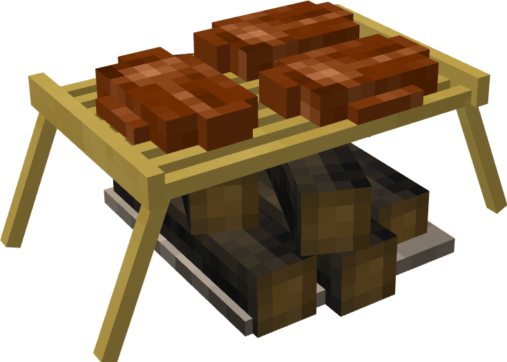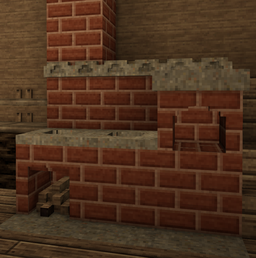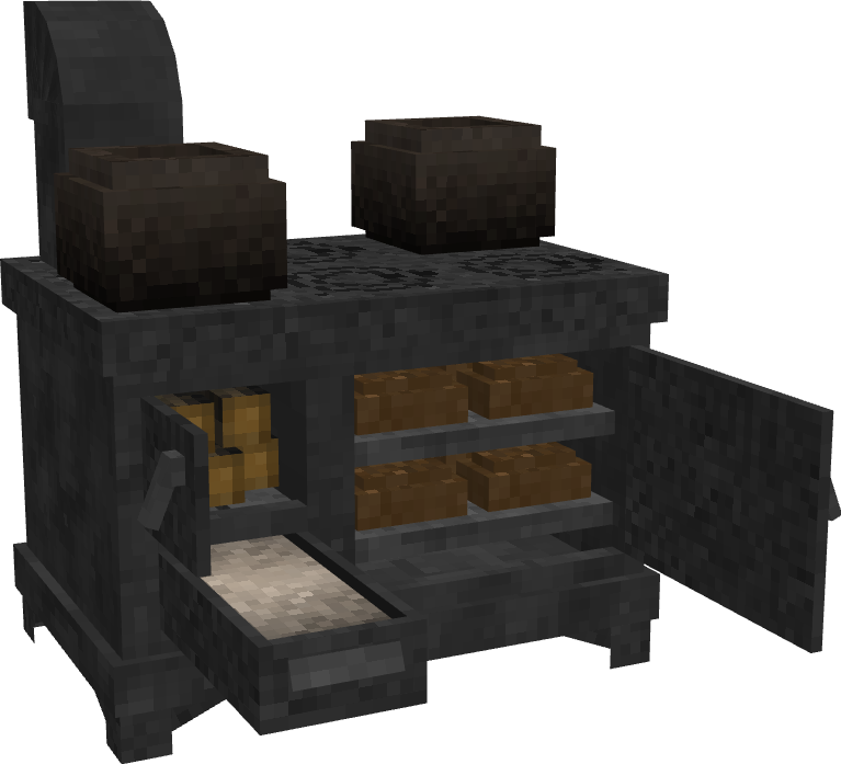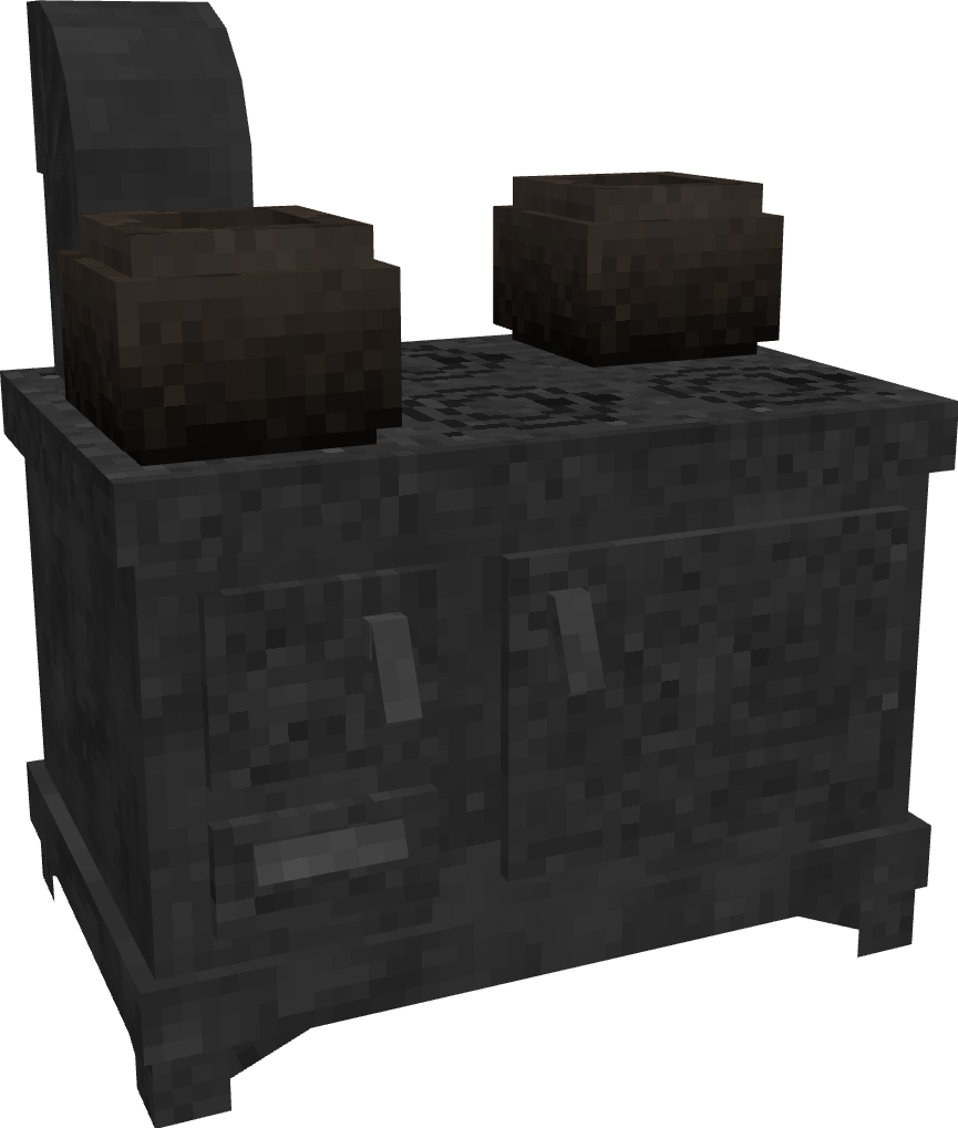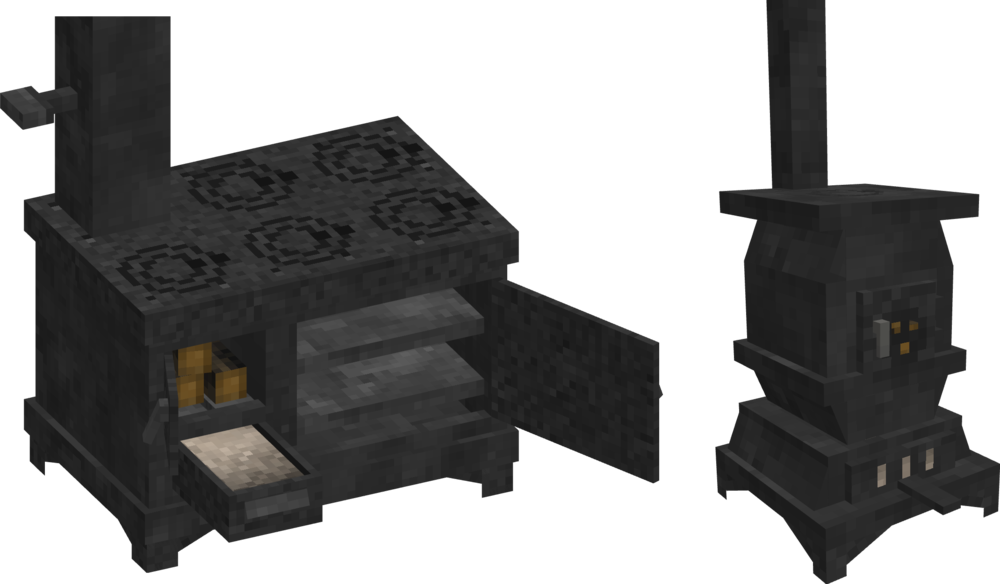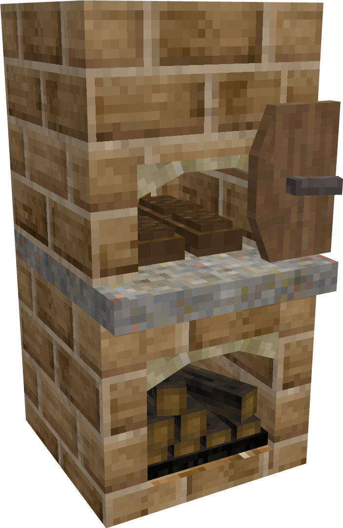 (All models are not final, just proof of concept) The current system of food cooking leaves much to be desired in specifically the heating realm. The first station for cooking you ever get is a fire pit which you can construct within minutes of starting a game, which continues to be used for the entire game despite having access to advanced technology and refined metals. As such, I think it would be reasonable to add in structures which serve the same fundamental purpose as a fire pit but are more efficient for a greater level of progression along the technology tree, such as being able to cook more items at once, using fuel more efficiently, and heating rooms more efficiently. Before getting into examples, I would like to detail a few systems that would work well with these changes and additions Ventilation Currently, any enclosed 7x7x7 maximum room in VS benefits from a +1C body temp bonus as well as an increase for the heating range of fire pits, this system could be adapted so that if there is an active flame in the room (torch, fire pit, pit kiln, forge, etc) the smoke level of this room will gradually increase, damaging the player more as it becomes closer to 100%. Smoke will passively decay from a room over time at a slow rate, but this can be accelerated by placing a chimney in the room with unobstructed access to the sky. Smoke can be reduced further by placing the valid chimney over the source of the smoke, which will greatly decrease the rate at which the source produces smoke, and certain types of ovens have integrated chimneys they can be directly funneled into. Wood Ash A product created from the burning of wood in any form, widely used as a fertilizer, ceramic glaze, and the primary ingredient in making potash. Could provide moderate amounts of K nutrient when used on soils, but could be further refined into potash by leaching the solution with water to produce lye and then boiling the solution in a pot to produce a small amount of potash which acts as it currently does in game. Wood ash would also prevent ovens or fire pits from working if too much of it builds up, requiring removal by use of a shovel. Stock Pot A large metal pot which can be used for cooking large portions of meals (4 slots, 24 in each slot) and boiling liquids (producing potash, boiling bones in water to make stock). Can be made either of tin-lined copper or cast iron, which is able to cook its materials faster than the tin-copper pot for balancing sake. Cast Iron Iron that is cast, simple as that. Produced by heating a crucible inside of a bloomery furnace (or in a new kind of fire brick furnace) and pouring the molten iron into a variety of new casts, such as railings, decorative metal plates, cookware, and most importantly a cast iron stove. And now onto the ovens. Brick Oven (Copper Age) A large two block oven which requires a significant amount of bricks and a small amount of relieved stone to construct. Composed of a lower half for burning wood and an upper half that is heated by the lower half in which bread and pot cooking can be performed. Capable of holding 4 loaves of bread and 2 cooking pots. Burns fuel at 50% the rate that it would burn in a fire pit, but releases heat slower compared to the fire pit in proportion to its 50% rate of consumption. Has a high heat capacity, meaning the top oven half will take a significant amount of time to heat up fully. Heat will leak from the upper baking area faster if the cover is removed. Grill (Bronze Age and Beyond) A simple metal grate made of bronze or iron which can be stood up over top of a fire pit or a pile of smoldering charcoal to cook food in a highly portable and efficient manner. Operated by placing the grill over a fire pit. Does not consume fuel faster but is capable of cooking two pots or four pieces of meat simultaneously, with grilled meats providing a protein nutrition and saturation bonus over typical spit roasted meat. Can hold one clay pot or one stock pot. Cast Iron Stove A large and expensive stove which is capable of cooking huge amounts of food at once and has great fuel efficiency. Operated by placing wood in the fuel hatch (marked in red) which transfers heat to the cooking surface and oven (marked in green). Ash is removed by right clicking the ash tray (marked in blue) with a shovel to obtain wood ash. Can cook 4 clay pots or one stock pot in addition to 8 loaves of bread in its oven. Each hatch must be opened and closed to interact with, open hatches rapidly sap heat from the oven. Burns fuel at 25% the rate that it would burn in a fire pit, but releases heat at only 25% the rate. Greatly more efficient at heating an enclosed room, providing an even larger body temperature bonus for anyone within the enclosed space. Approximately 1.5 blocks long and 1 block tall at its countertop. Exhaust vent can bend to fit various positions and configurations, such as feeding into covered pipe or a stone chimney.
