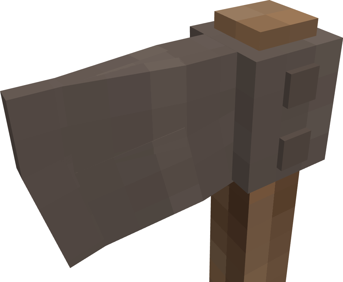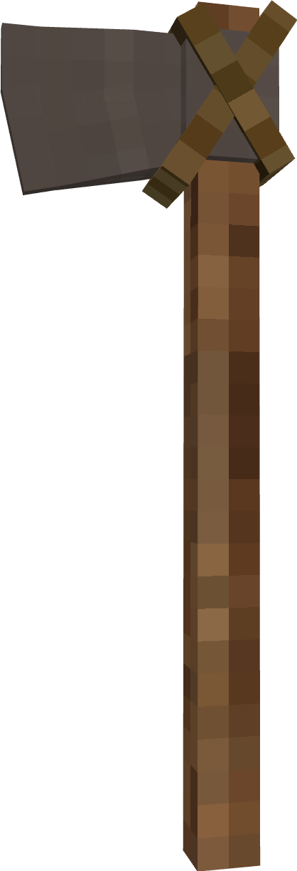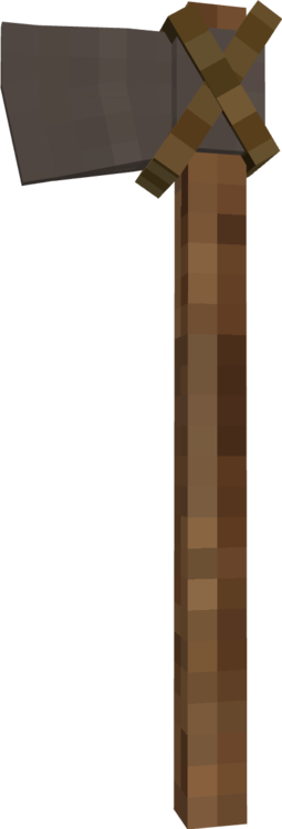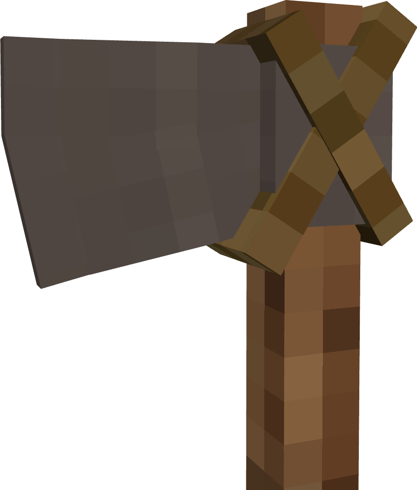 (As per usual, models aren't final and mostly just exist to demonstrate ideas. I will be using axes to demonstrate my points throughout this post but this applies to all tools.) Tools are in a bit of an odd place right now, I usually find myself turning the durability up x2-x4 because the basic in game tools just seem so weak. A well forged iron axe will break after felling 40 soft pine trees whereas in real life the same axe would keep on working for generations with good maintenance, sharpening, and replacement of the shaft it is mounted on. Because of this, I think the best way forward for the VS tools system would be to implement a modular tool construction system, nothing complex as you'd see in Tinker's Construct or Tetra in Minecraft with many possible materials and modifiers, just a very simple system with simple improvements. Each individual part of the tool can break on its own and has its own durability, with the binding and handle being much weaker than the head which itself can outlast many handles. The tool will also lose sharpness over time but can be restored by grinding it back to an edge. In line with a more in world approach to tool construction as is planned in the future, this system should primarily be expressed in world through a new block called the workbench which acts as a one stop shop for all tool creation and modification functions. It would be upgraded throughout the game to reflect the player's current level of tech and would be used for a variety of other specialized functions. Handles Currently, the only type of tool handle available in game is made out of a stick you find on the ground in a forest that has been lying there for many, many years which somehow manages to form a stable, solid, straight, and very usable wooden handle. I think it would be a lot more accurate to have a more complex system of handles, sticks would still exist for sure but would exist as a flint-tier handle that you quickly toss into the fire pit upon first creating a saw and becoming capable of producing quality handles. These handles would be separated into 3 categories: Softwood Hardwood Dense Hardwood Softwood includes woods such as pine and redwood, they are the softest of handle types and are most likely to break. Also included in this durability tier would be forest floor sticks to reflect the ease with which they can be obtained. Hardwood includes woods such as oak, walnut, and birch, they are reasonably dense and hard handle materials and are relatively common within temperate areas. Dense Hardwoods include woods such as ebony purpleheart, they are the most dense possible woods and are rare in the typical regions that players spawn in, making their use more restricted. Additionally, handles can be wrapped for an extra durability and efficiency bonus Bindings In a way, bindings already exist in this game in the form of lashings around copper tools and the bolts in an iron axe, but this binding system would extend these options to all tools. Bindings would primarily consist of: Lashings Wedges Metal Pins Lashings would consist of flexible rope materials like reeds, linen, and leather. They are not particularly effective at holding a head on the handle and are primarily used to bind flint to sticks for early game tools, but they can work in a pinch if your tool breaks in the field and you need a quick repair to get you through a mining session. Wedges would consist of wood or metal wedges that can be hammered into the tops of tools such as pickaxes, axes, and prospecting picks. They are quite durable and cheap but require the workbench to replace. Metal pins would consist of sturdy metal pins that can be inserted into the tool head to bind them to the handle. They are incredibly durable but require a more advanced workbench to use. Heads These would mostly stay the same but with one primary difference in that most tools require sharpening after being cast or forged. Early game sharpening can be done on raw exposed rock and later game sharpening can be done on whetstones or mechanically driven grindstones. A sharp tool will be effective for a reasonably long period of time before rapidly declining in effectiveness as it loses its edge with field sharpening being easily accomplished with a portable whetstone. Examples A few fully constructed tools. Left to right: Forest floor stick handle, reed lashings, iron axe head. Pine handle, pine wedge, iron axe head. Oak handle with linen wrapping, iron pins, iron axe head. Ebony handle with leather wrapping, iron pins, heavy iron axe head.